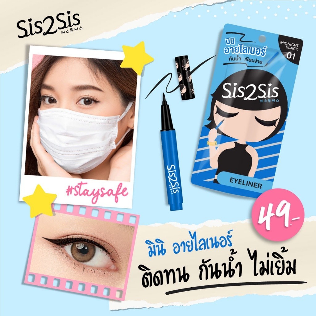 (1ชิ้น) มินิอายไลเนอร์(ซองฟ้า) ซิสทูซิส Sis2Sis Super Sharp Eyeliner 0.5ml x 1