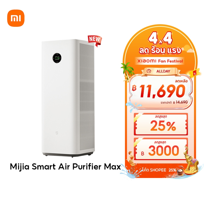 [NEW]Mijia Smart Air Purifier Max โครงสร้างฟิลเตอร์คู่ใบพัดนวัตกรรม ระบบเซ็นเซอร์ความละเอียดสูง 6 ระบบ หน้าจอ LCD สี