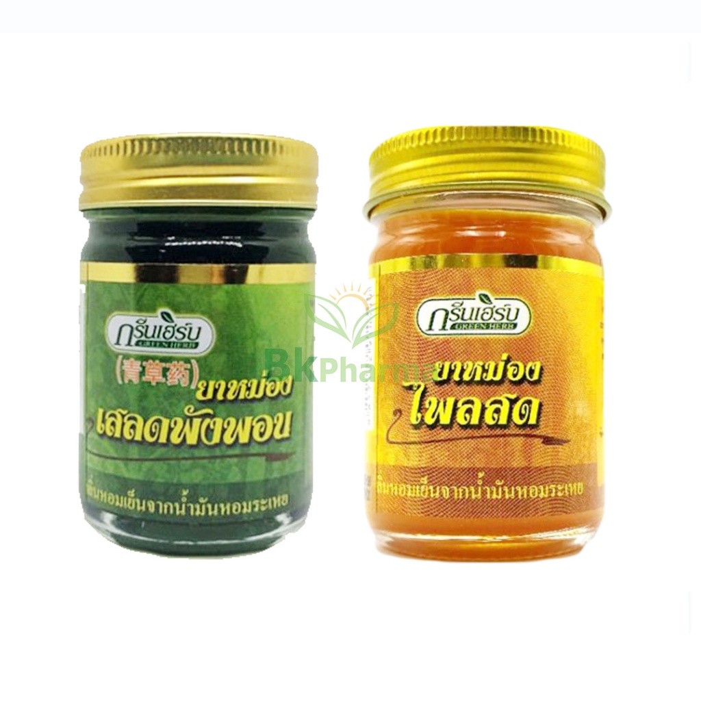 ยาหม่อง กรีนเฮิร์บ ยาหม่องเขียว กรีน เฮิร์บ ยาหม่องเหลือง เสลดพังพอน / ไพลสด Green Herb 10 - 50 กรัม GreenHerb 1 ขวด