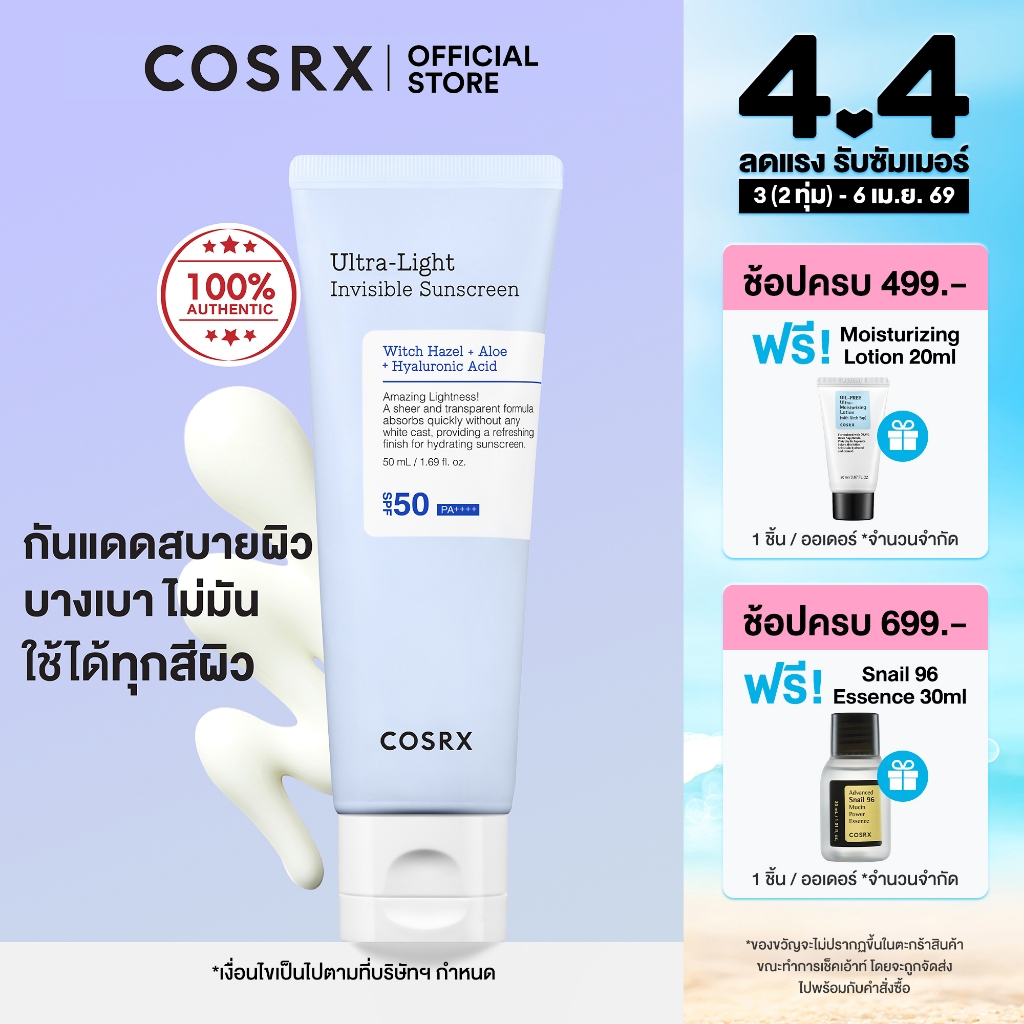 COSRX Ultra-Light Invisible Sunscreen ครีมกันแดดเนื้อเซรั่ม SPF50 PA++++