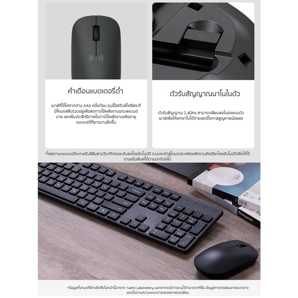 Xiaomi Wireless M&K Combo ชุดเมาส์คีย์บอร์ด ตัวรับสัญญาณไร้สาย 2.4GHz เซ็นเซอร์ความแม่นยำ 1000DPI