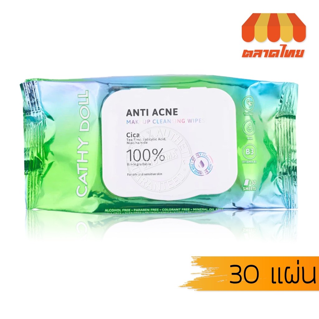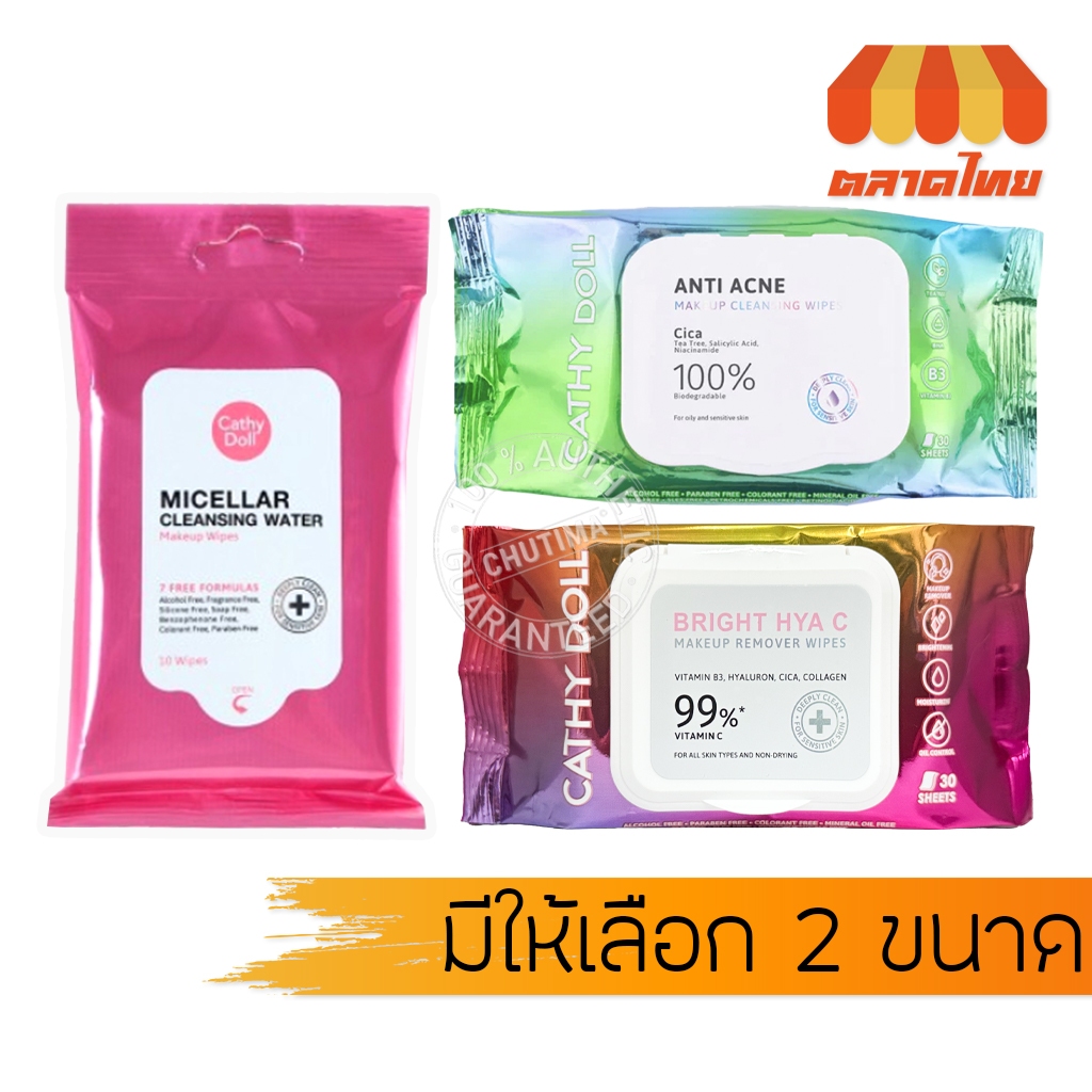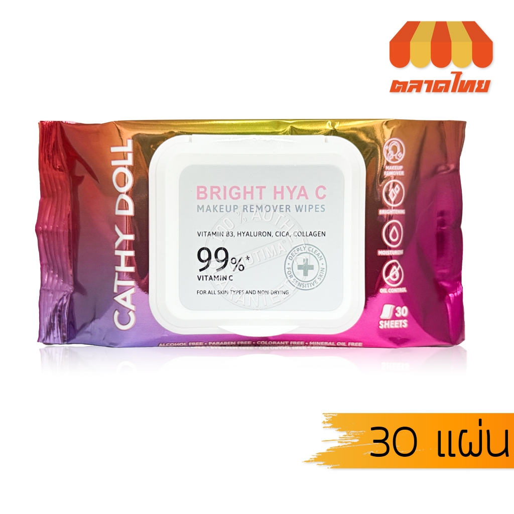 ทิชชู่เปียก แผ่นเช็ดเครื่องสําอาง เคที่ดอลล์ Cathy Doll Bright Hya C Makeup Remocer/ Cleansing Wipes 10/30 wipes