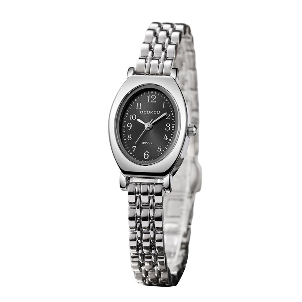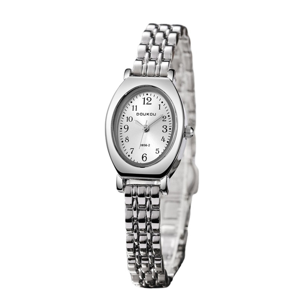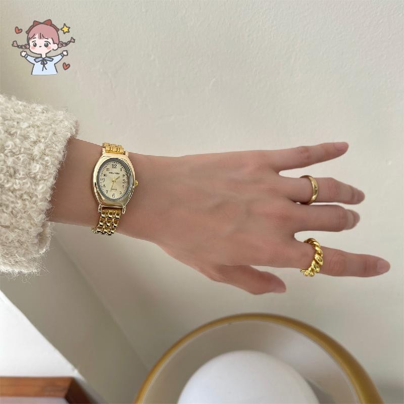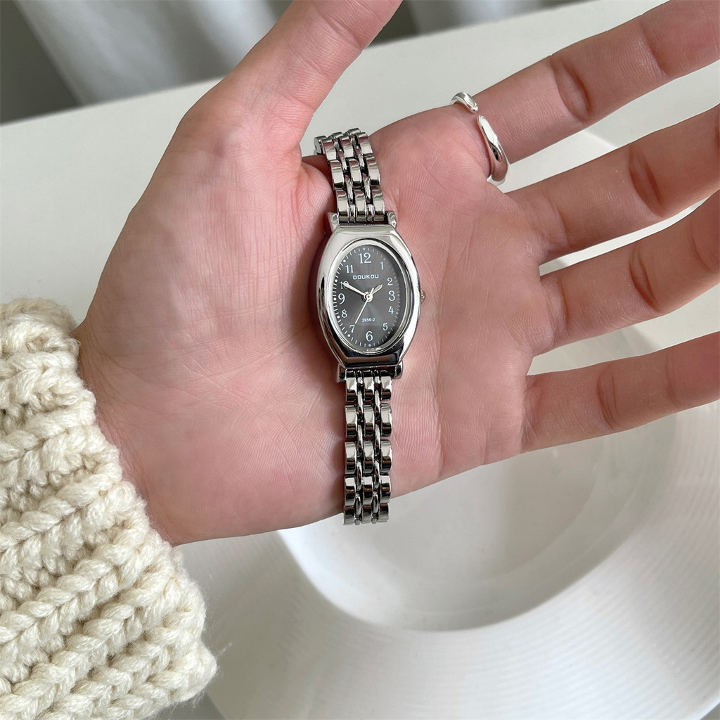 นาฬิการูปไข่สําหรับนักเรียนหญิงการออกแบบสไตล์โบราณสายเหล็กนาฬิกาควอทซ์เกาหลีประณีตและระดับไฮเอนด์