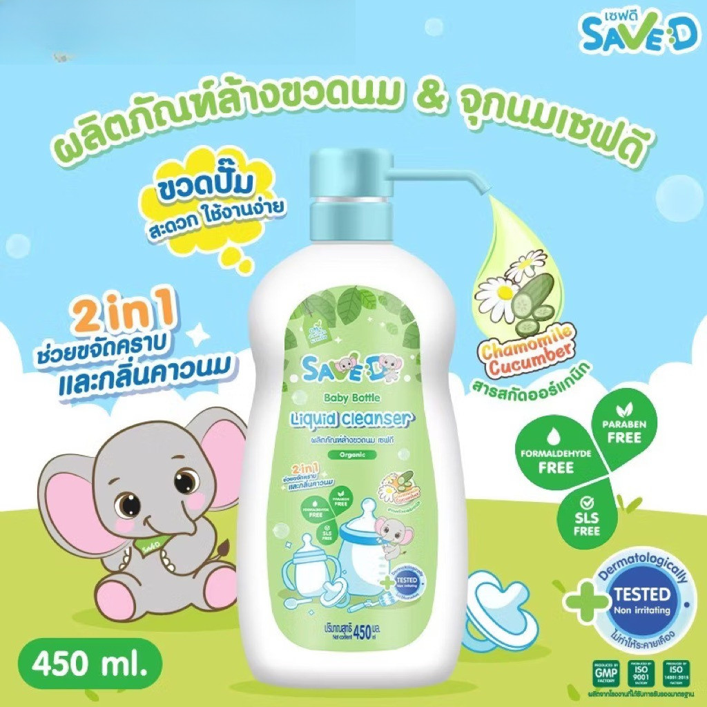 Save D ผลิตภัณฑ์ล้างขวดนมและจุกนมเซฟดี ชนิดขวด 450 มล.*1ขวด