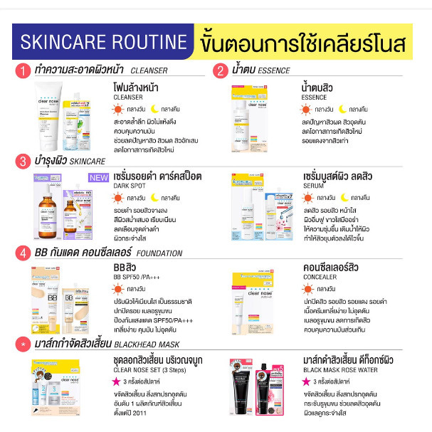 1 กล่อง Clear Nose เคลียร์โนส 12 สูตร BB Concealer/Black Mask/Solution Serum/Facial Cleanser/Dark Spot Serum/Acne Gel/UV