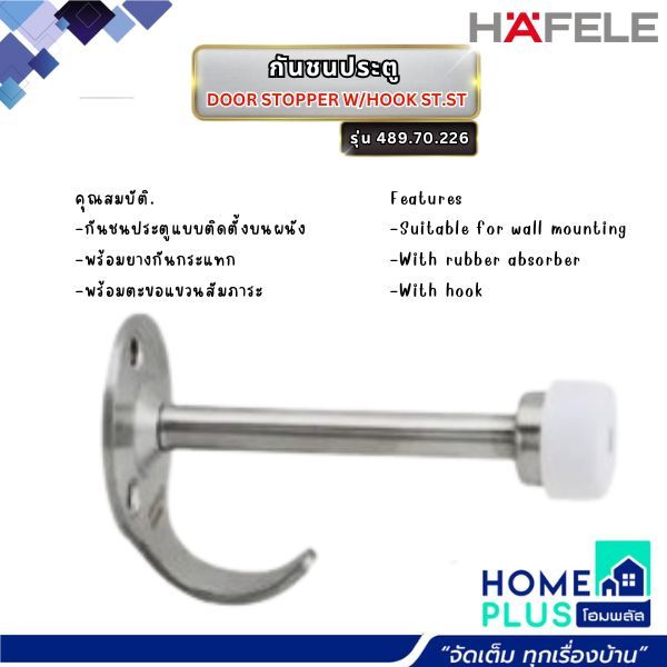 HAFELE กันชนประตู DOOR STOPPER W/HOOK ST.ST. 489.70.226