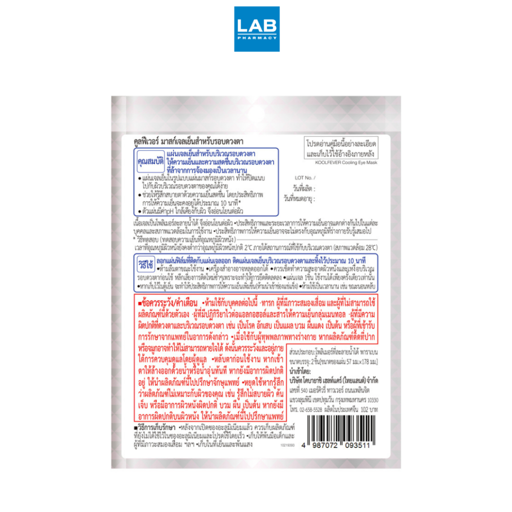 Koolfever Cooling Eye Mask 2 Sheets คูลฟีเวอร์ มาสก์เจลเย็นสำหรับรอบดวงตาซอง 2 ชิ้น