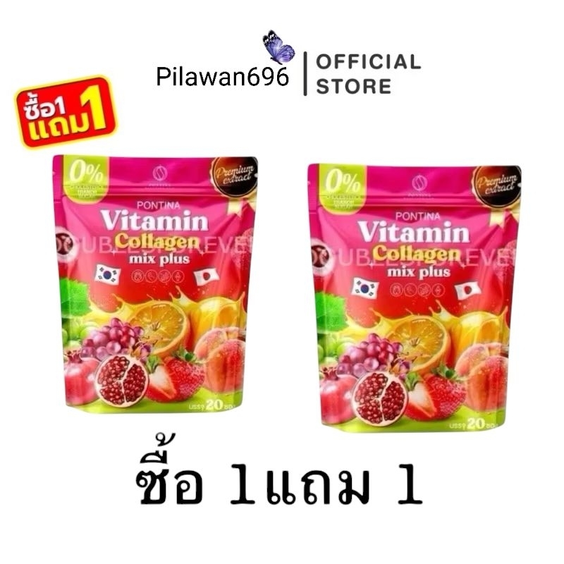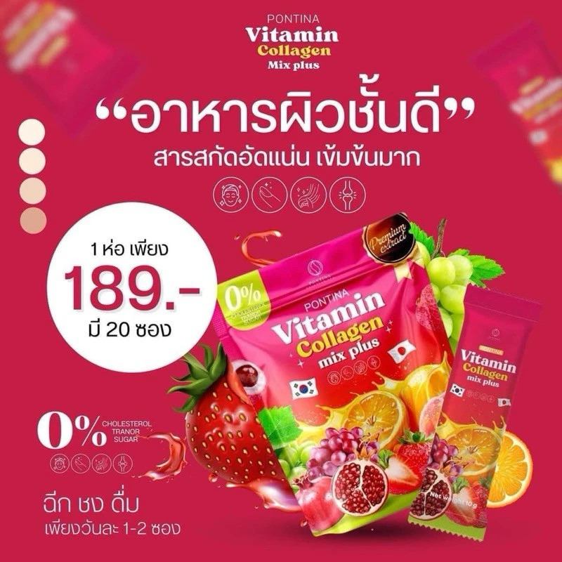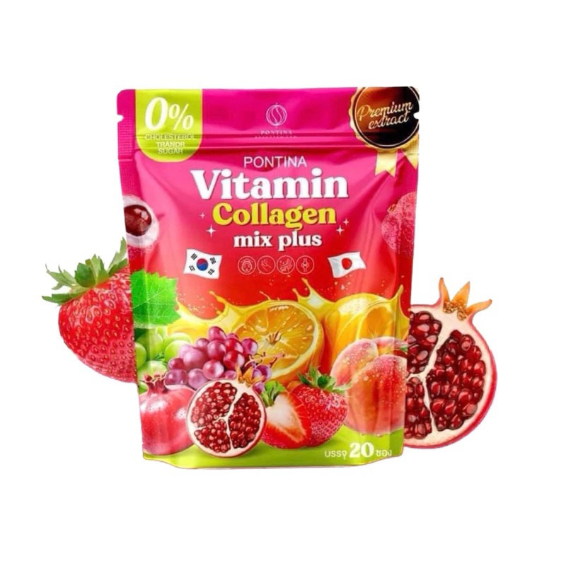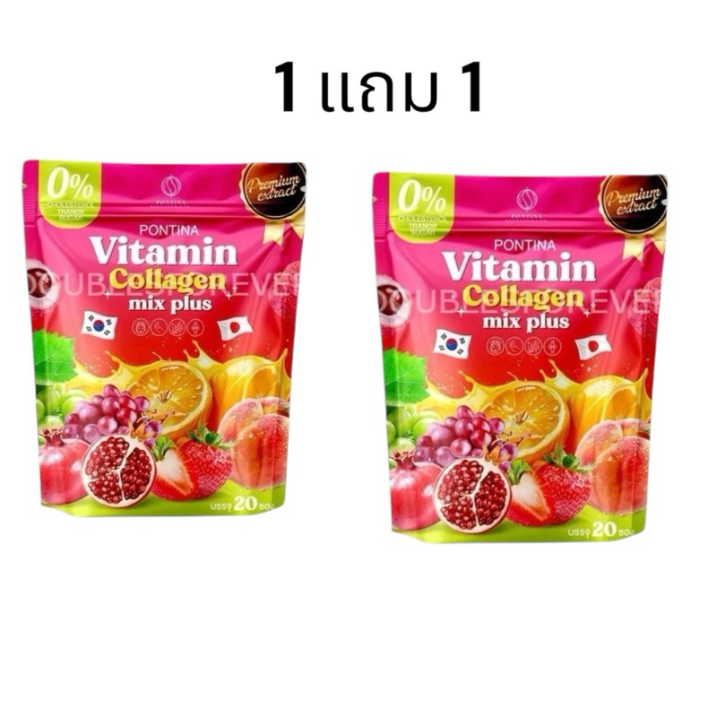 Pontina พรทิน่า วิตามิน คอลลาเจน มิกซ์ พลัส Vitamin Collagen mix plus ปริมาณสุทธิ 200 กรัม ( 10กรัม x 20 ซอง)