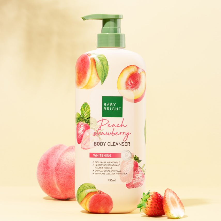 เบบี้ไบร์ท ครีมอาบน้ำกลิ่นหอม กลิ่นพีช / องุ่น / อัลมอนด์ สบู่เหลว 450ml Baby Bright Body Cleanser