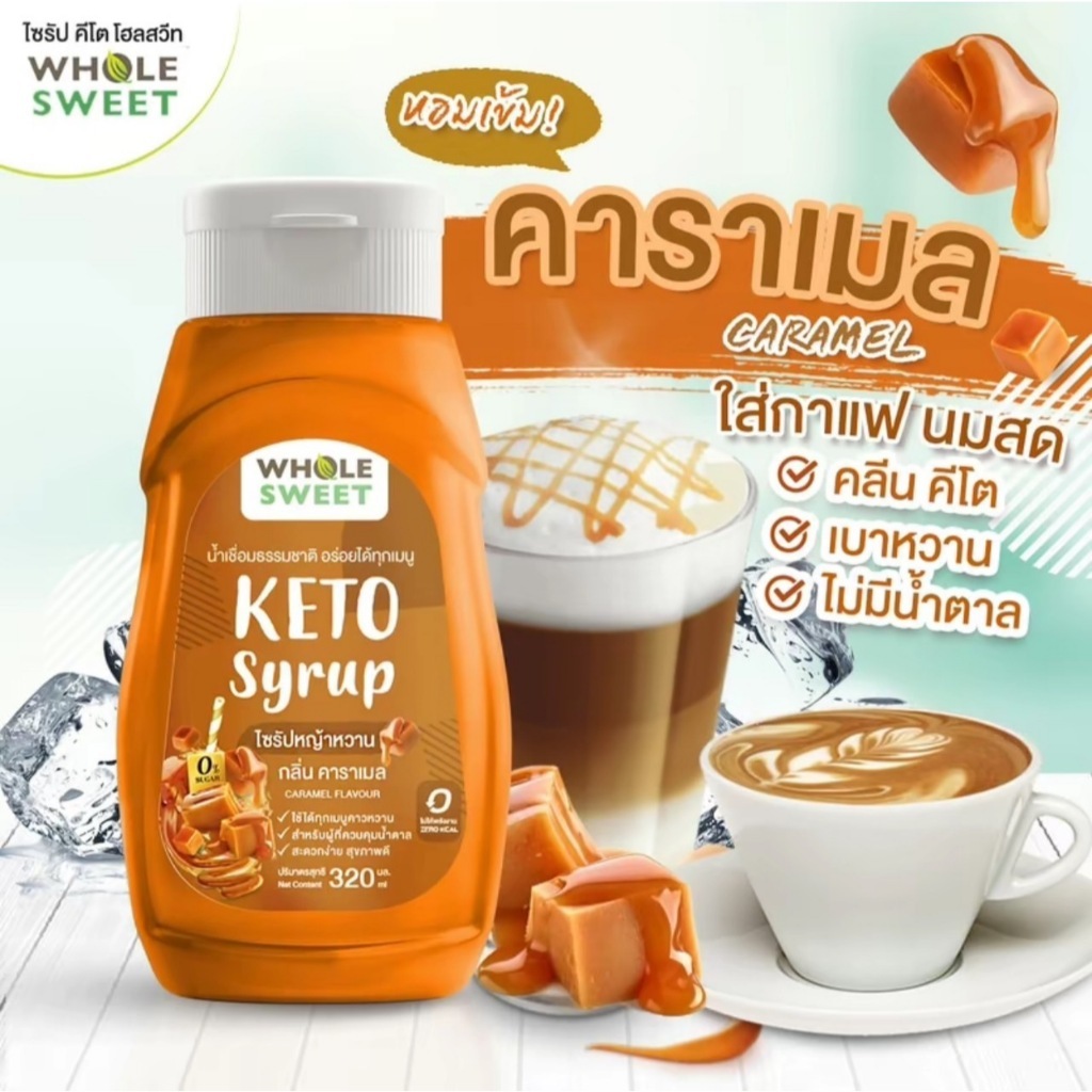Whole Sweet โฮลสวีท ไซรัปหญ้าหวาน น้ำเชื่อมหญ้าหวาน สูตรคีโต 320 มล. Keto Syrup สารให้ความหวานทดแทนน้ำตาล