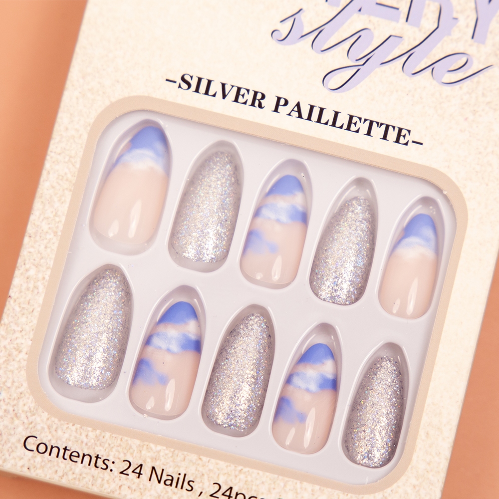 ชุดเล็บปลอมสำเร็จรูป Glittery Style สวยสไตล์เกาหลี บรรจุ 24 ชิ้น