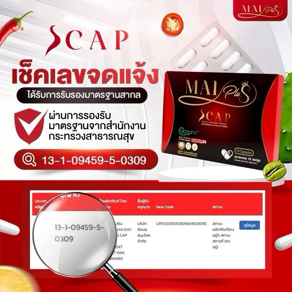 MaiPlus Scap ใหม่พลัส เอสแคป ใหม่พัชรี 1 กล่องมี 10 แคปซูล