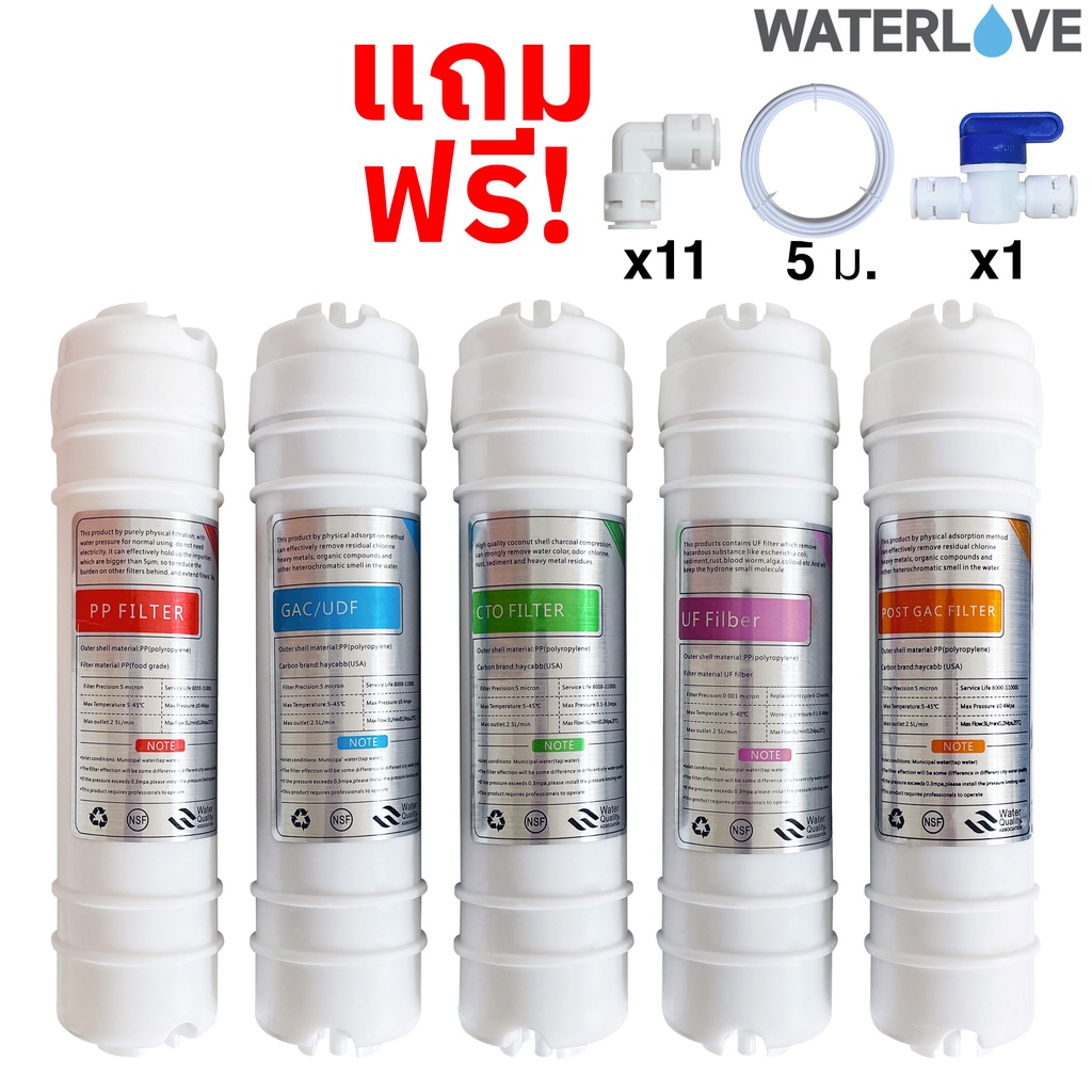 ไส้กรอง น้ำ 5 ขั้นตอนขนาด10และ11นิ้ว(ใส่แทน10นิ้วได้) เส้นผ่าศูนย์กลาง 2.5 นิ้ว สำหรับเครื่องกรองน้ำระบบUF แถมฟรี อุปกรณ์