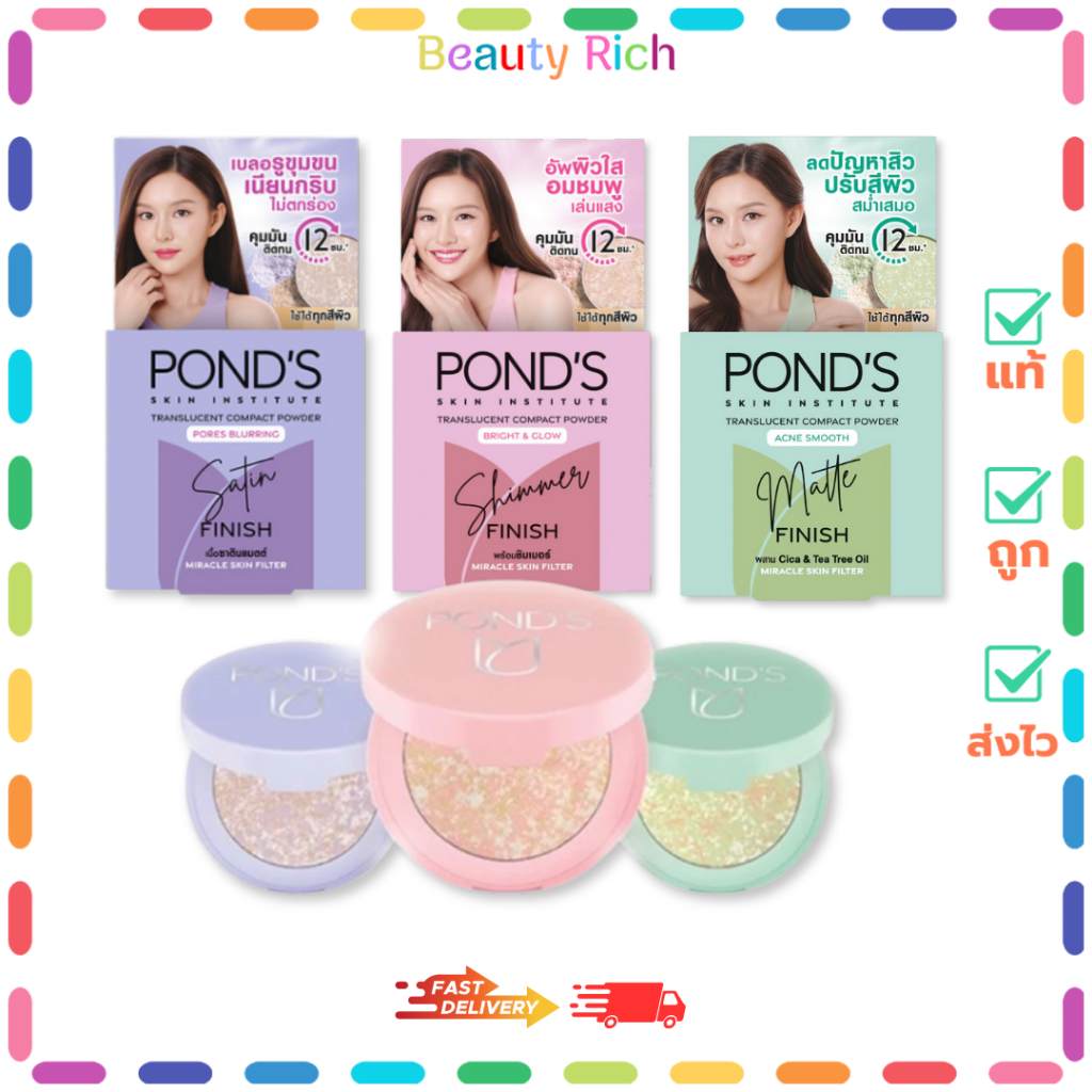 (1 ตลับ) แป้งพอนด์ส ตลับ 3 สี Ponds Compact Powder แป้งอัดแข็งโปร่งแสง ไซส์มินิ (ขนาด 4.5 g.)