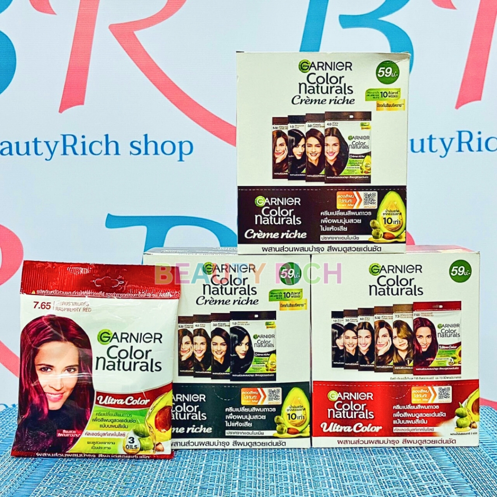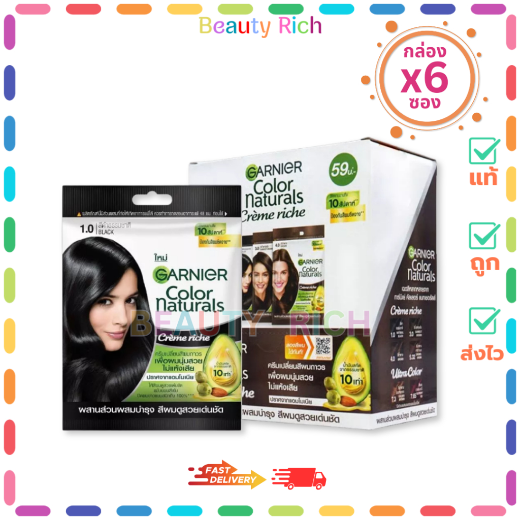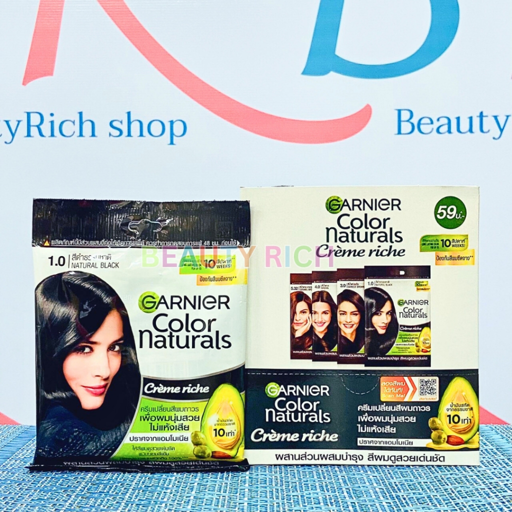 (กล่อง 6 ซอง) Garnier Color Naturals การ์นิเย่ คัลเลอร์ สีสระปิดผมขาว #1.0 สีดำธรรมชาติ (30 กรัม)
