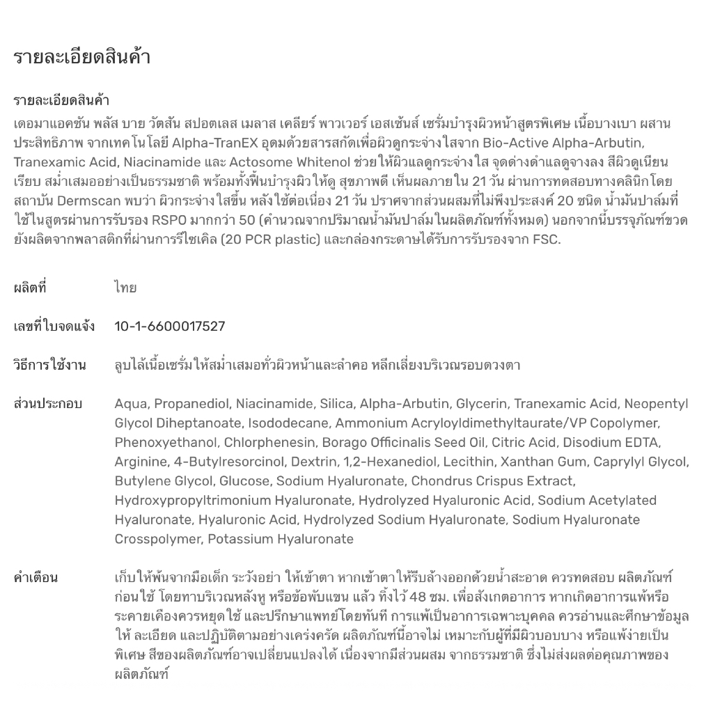 Exp.27 | Dermaction Plus by Watsons สปอตเลส เมลาส เคลียร์ พาวเวอร์ เอสเซ้นส์ 8 มล