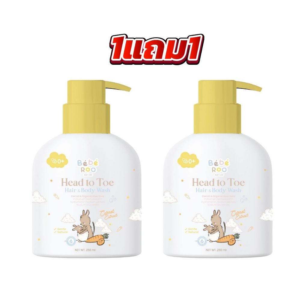 1แถม1 Bebe Roo Head to Toe Hair&Body Wash 250ml สบู่เหลวอาบน้ำและสระผมที่มีความอ่อนโยนต่อผิวเด็ก