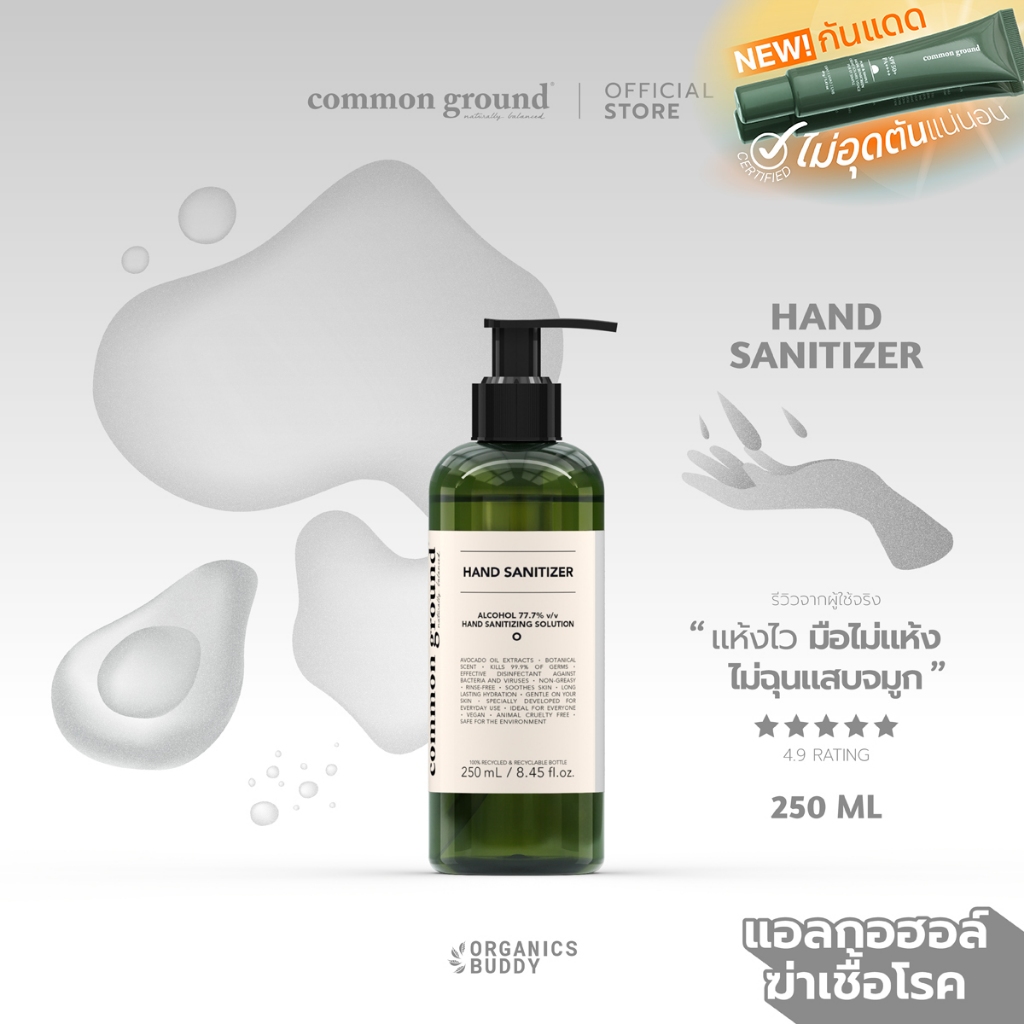 Common Ground Alcohol Hand Sanitizer 250ml แอลกอฮอล์ทำความสะอาด 77.7% ฆ่าเชื้อโรค 99.9% มือไม่แห้ง