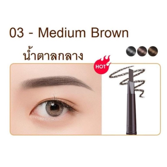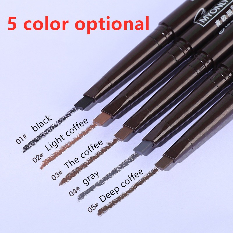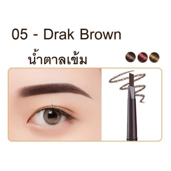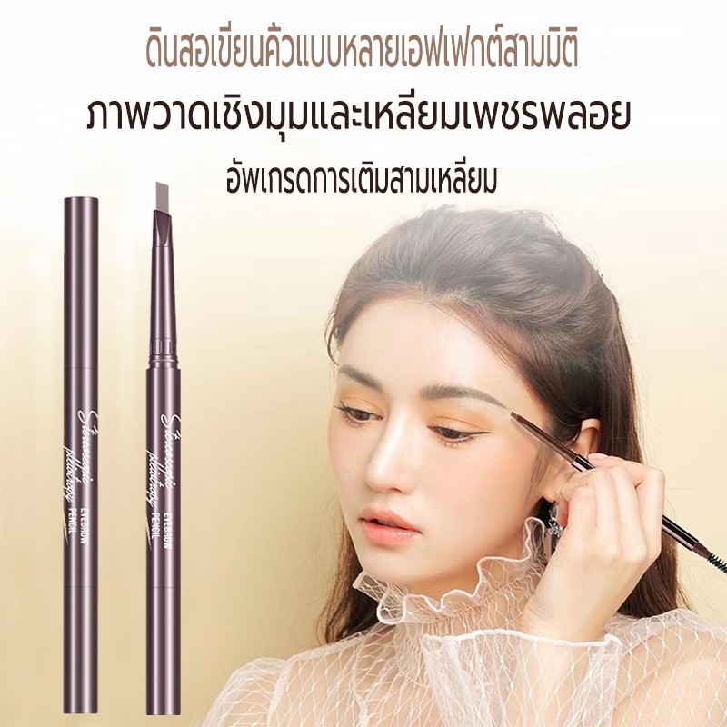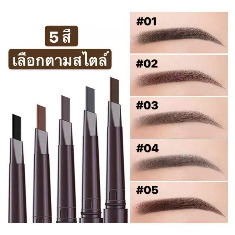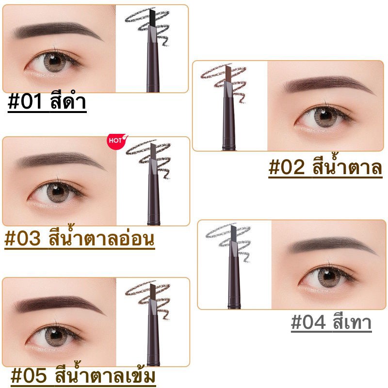 ดินสอเขียนคิ้ว กันน้ำ ดินสอเขียนคิ้วแบบหมุน 2 in 1 มีแปรงปัดคิ้วในตัว มี 5 สีให้เลือก