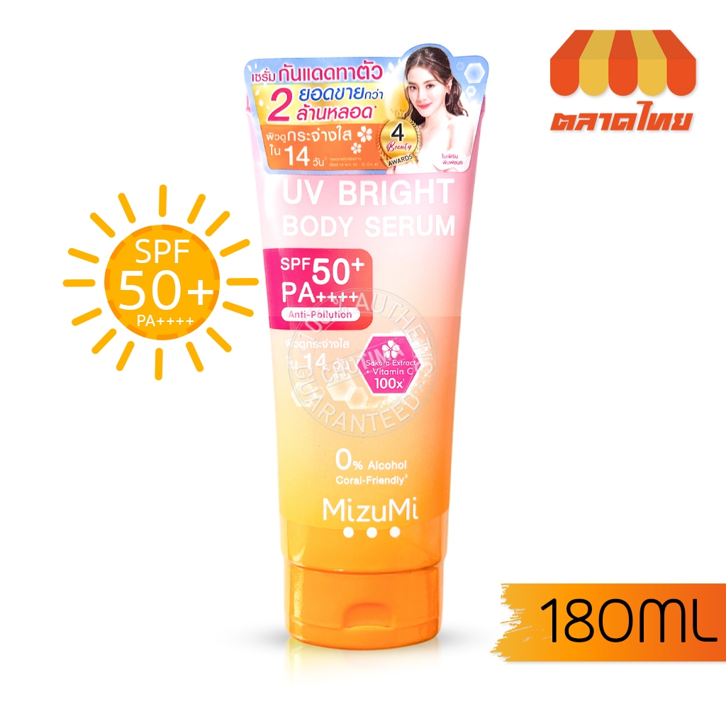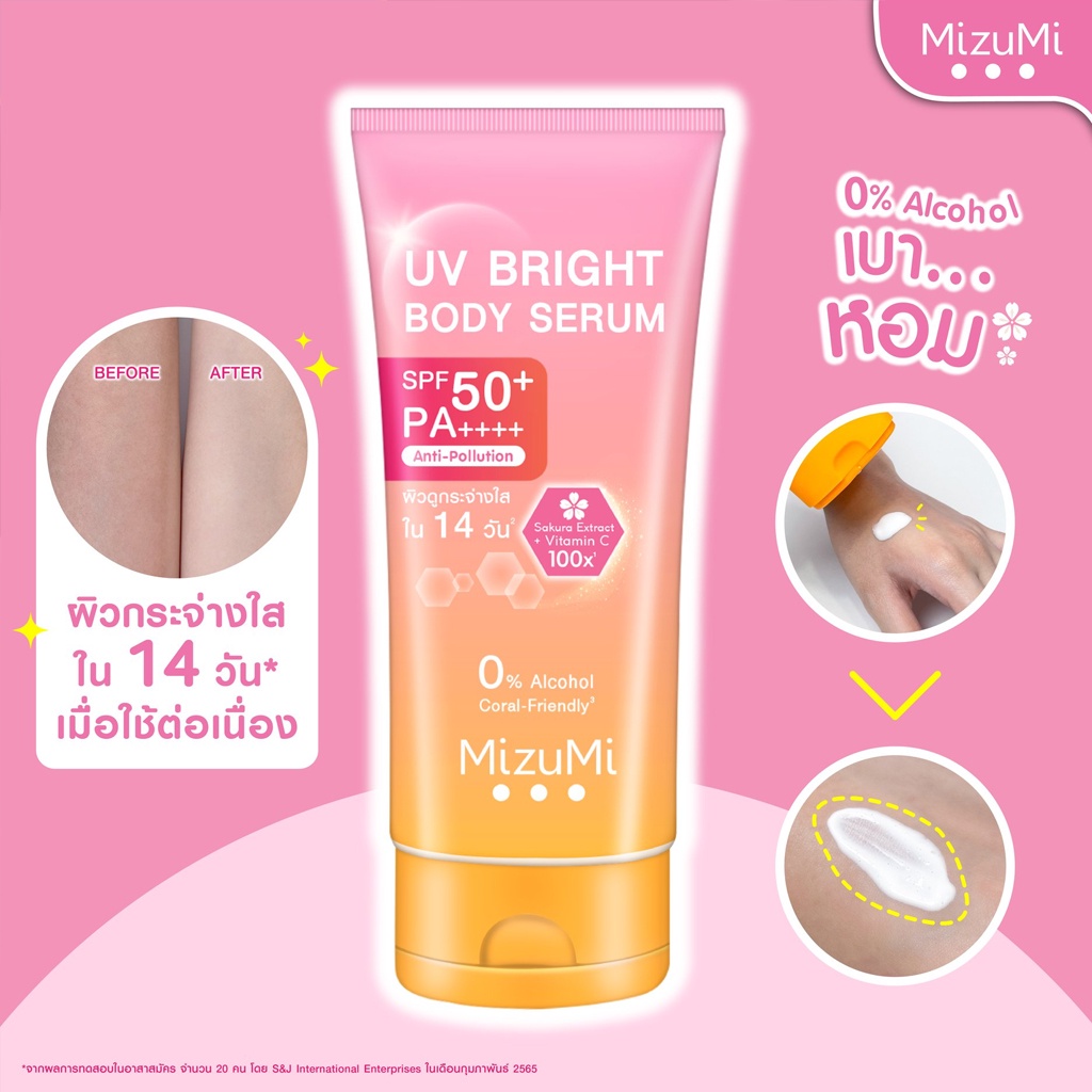 เซรั่มกันแดด ทาผิวกาย มิซึมิ เบาสบายผิว ไม่ทิ้งคราบ MizuMi UV Bright Body Serum 165 ml. /180 ml.