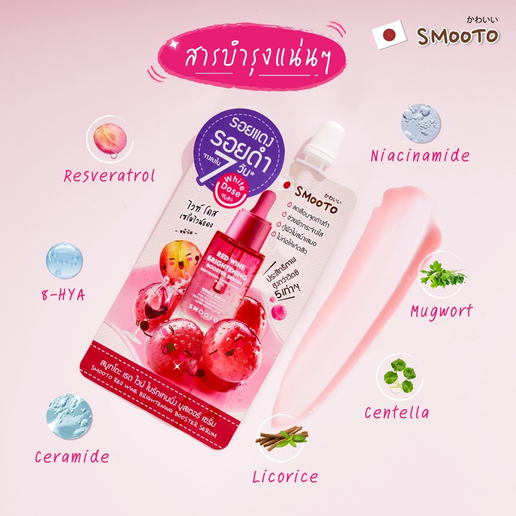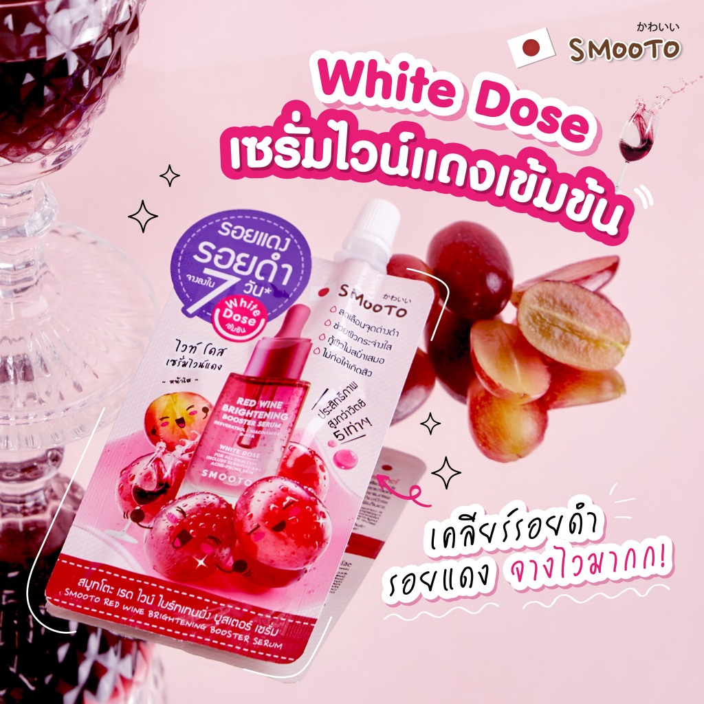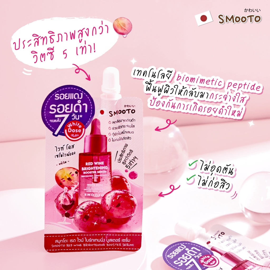 (1ซอง) Smooto สมูทโตะ เรด ไวน์ ไบร์ทเทนนิ่ง บูสเตอร์ เซรั่ม