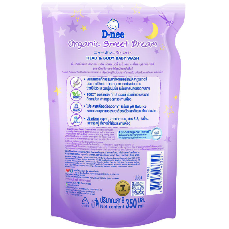สบู่เหลว ดีนี่ ออร์แกนิค สวีทดรีม สีม่วง ถุงเติม แพคคู่ 2 ถุง สบู่และแชมพูอาบและสระ Dnee Organic 350 ml