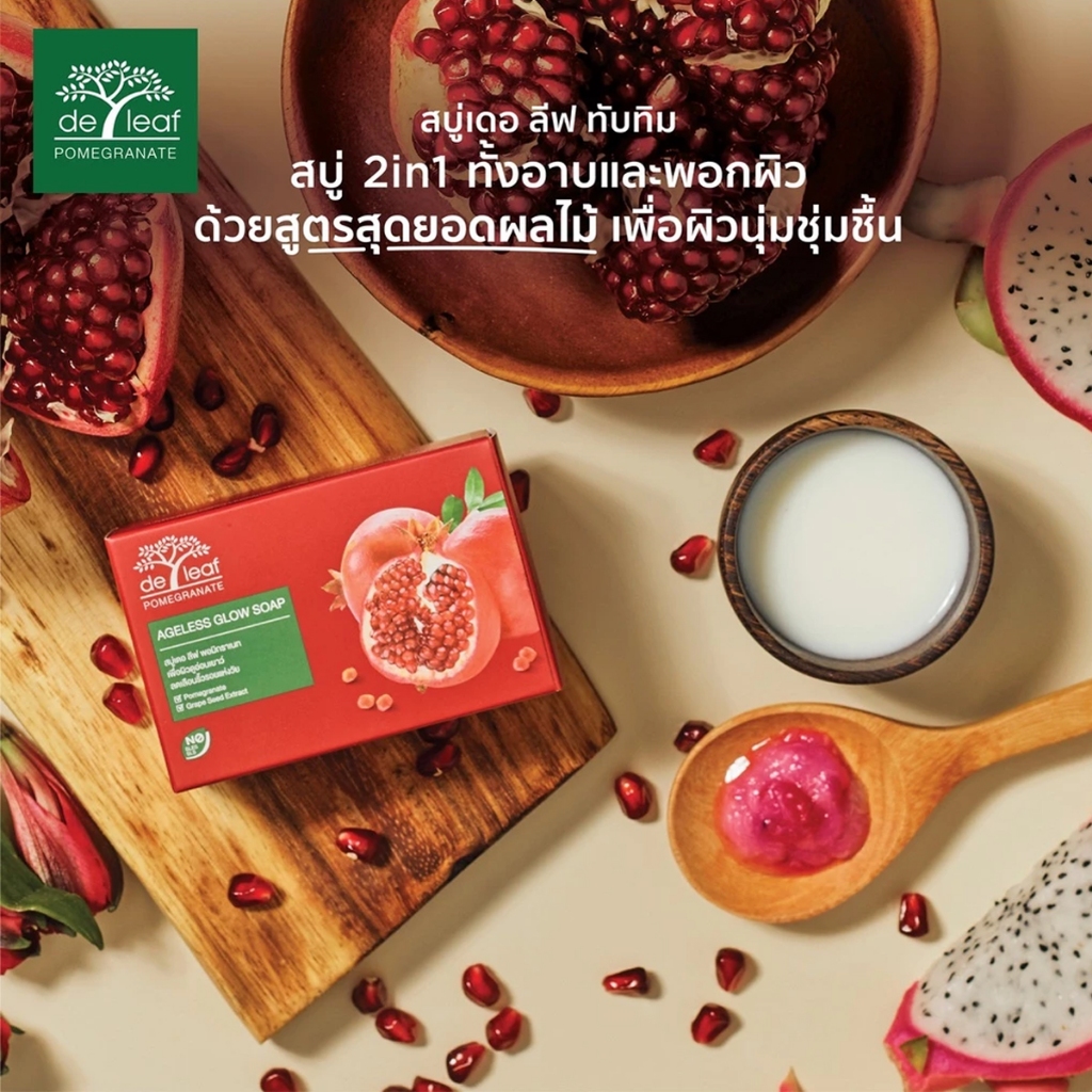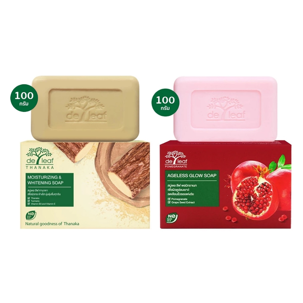 DE LEAF เดอลีฟ สบู่ทานาคา / เดอลีฟ สบู่ทับทิม 100 กรัม. De Leaf Thanaka / Pomegranate Soap 100 g (มีให้เลือก 2 สูตร)