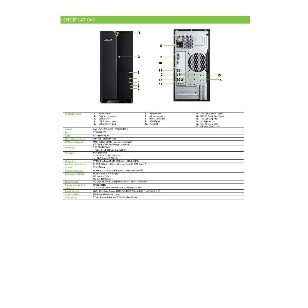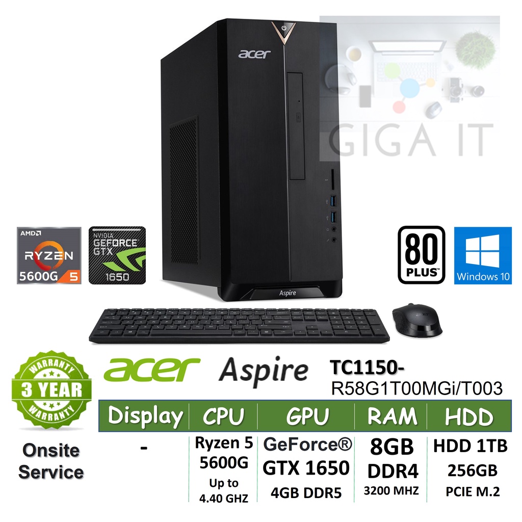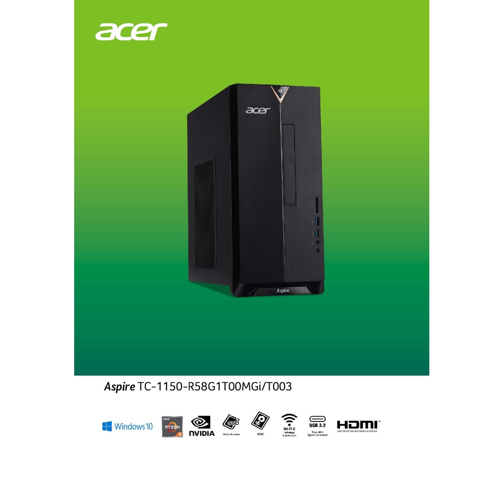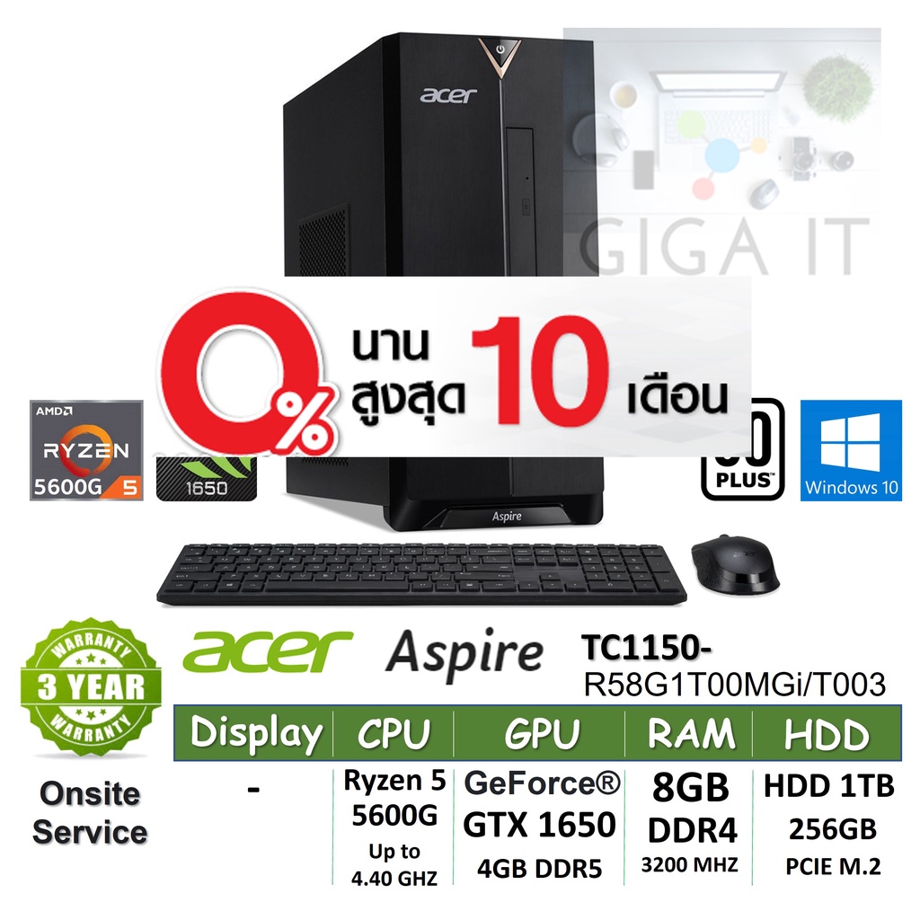 Acer Desktop Aspire TC-1150-R58G1T00MGi/T003 (R5 5600G, 8GB, GTX1650, 1TB+256GB M.2, Win10) ประกัน Onsite Service 3 ปี