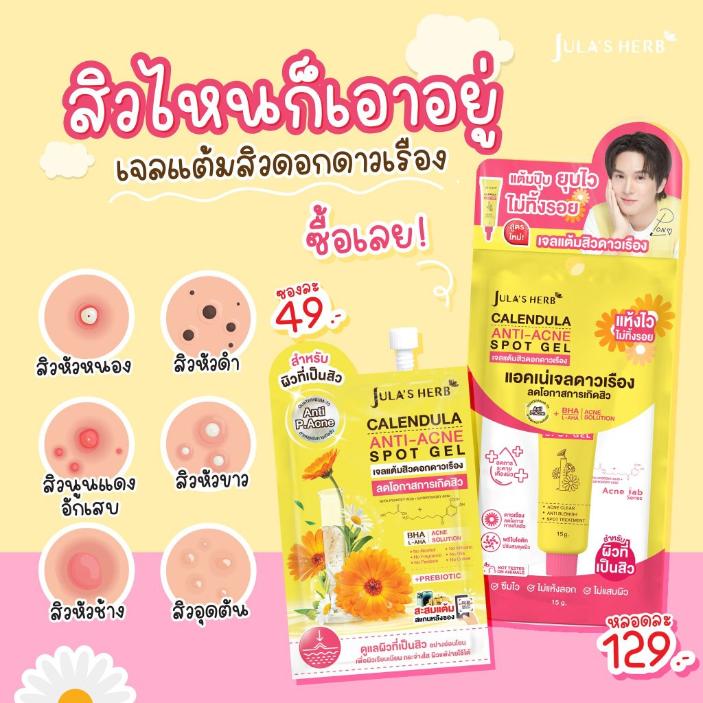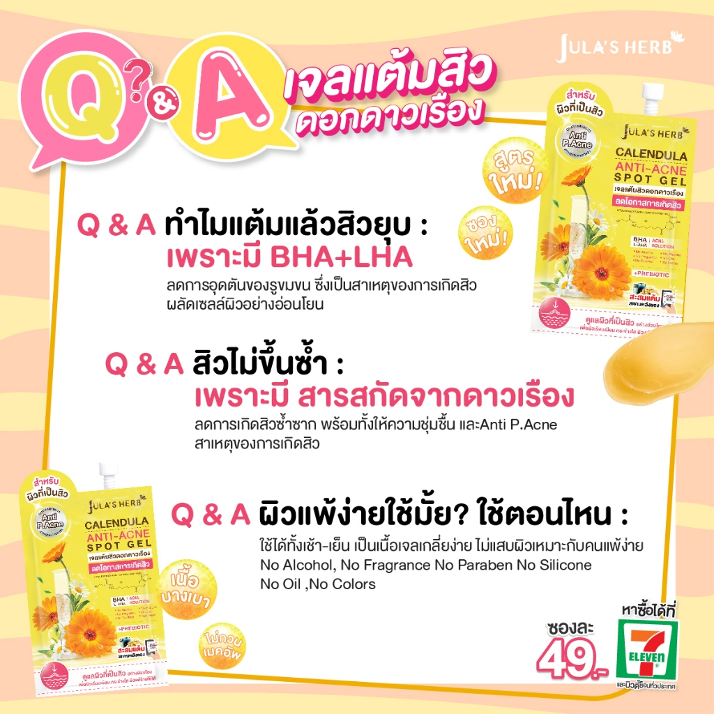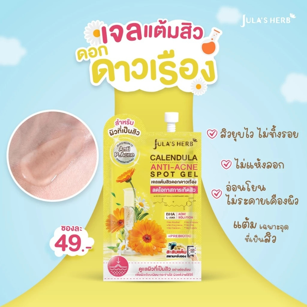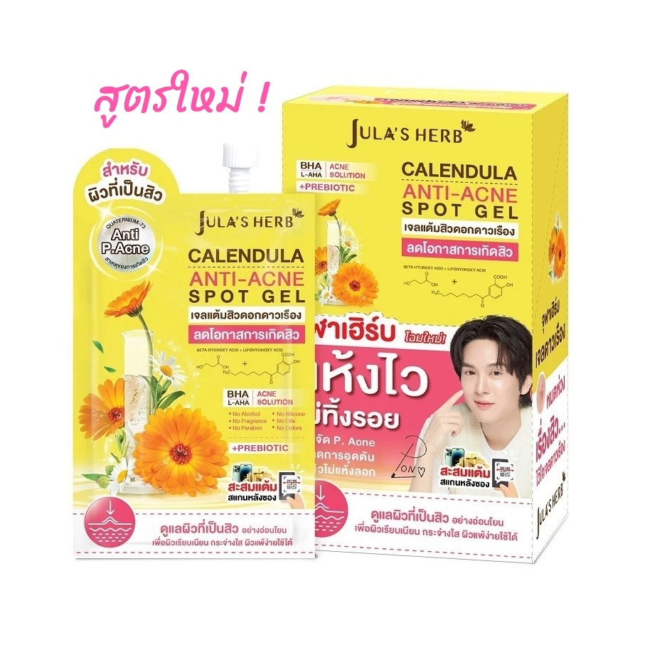 (ยกกล่อง x 6 ซอง) เจลดาวเรือง สูตรใหม่ จุฬาเฮิร์บ Jula's Herb ขนาด 6 กรัม