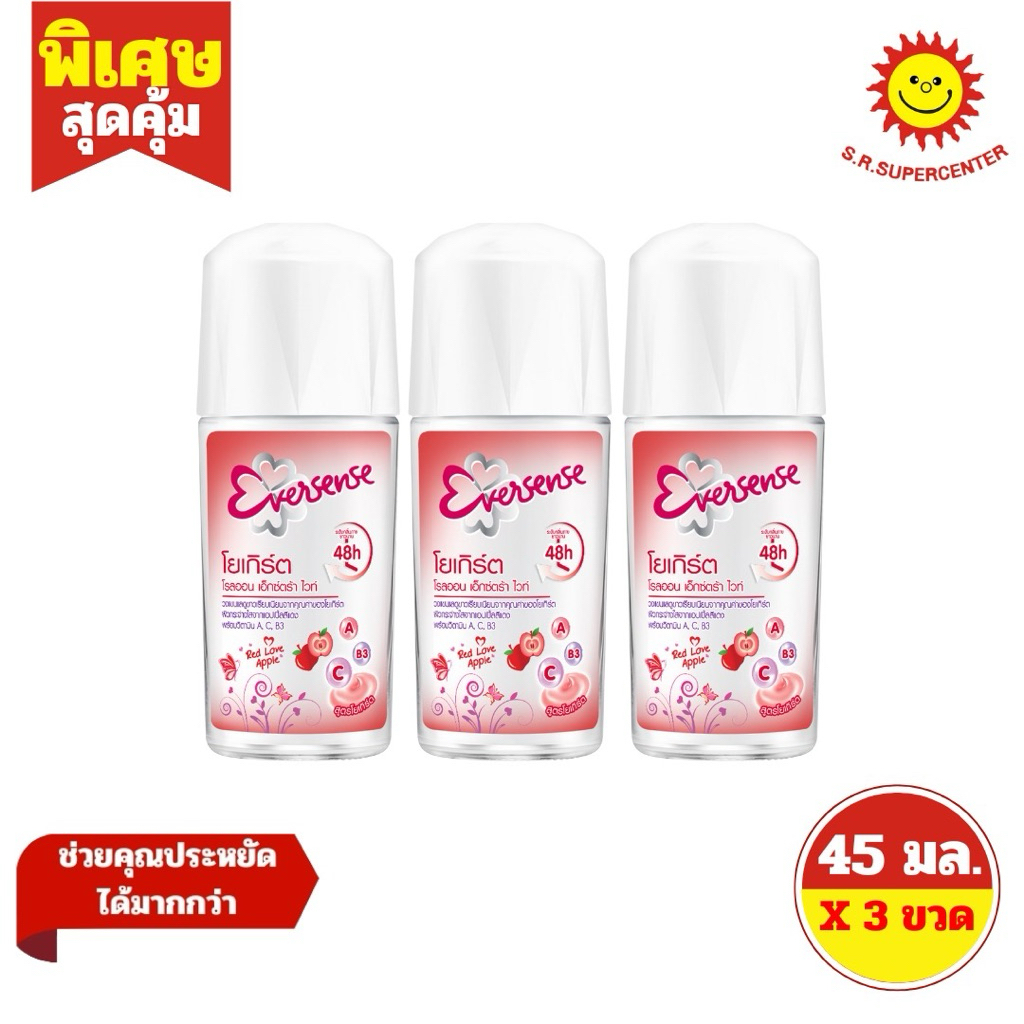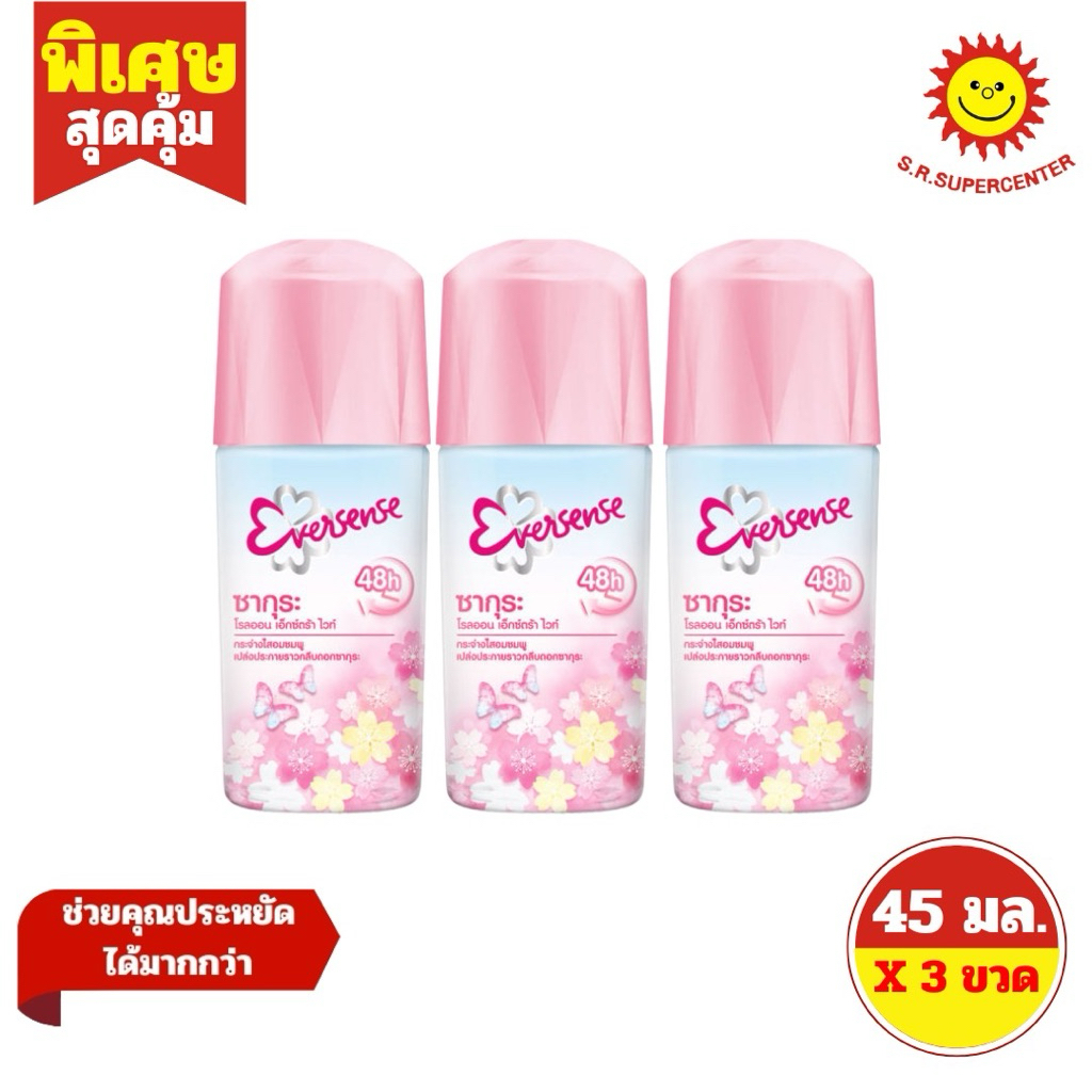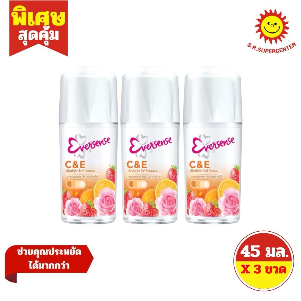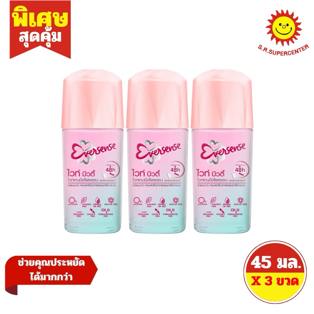 [3 ขวด ] Eversense เอเวอร์เซ้นส์ โรลออน ผลิตภัณฑ์ระงับกลิ่นกาย ขนาด 45 มล. (3ขวด) มี 8 สูตร