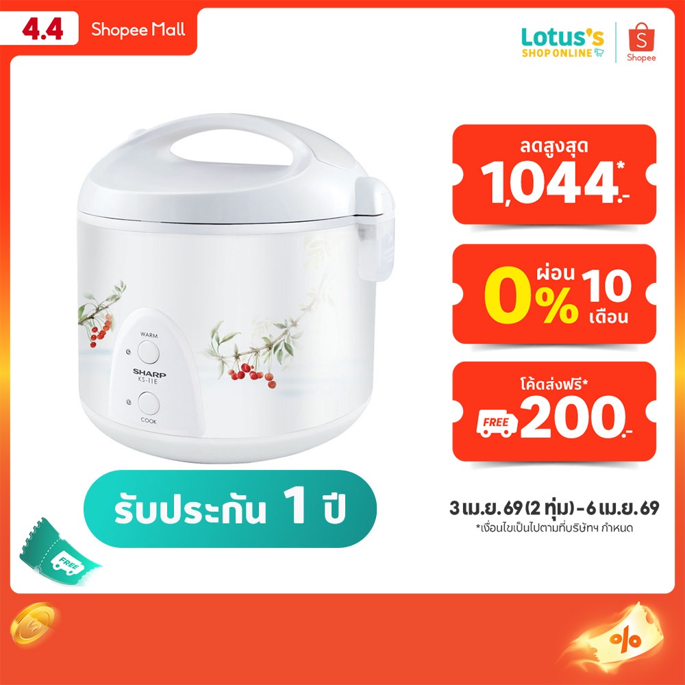 ชาร์ป หม้อหุงข้าวอุ่นทิพย์ ความจุ 1 ลิตร รุ่น KS-11E (คละสี,คละแบบ) SHARP RICE COOKER JAR TYPE 1 L. #KS-11E (ASSORTED)