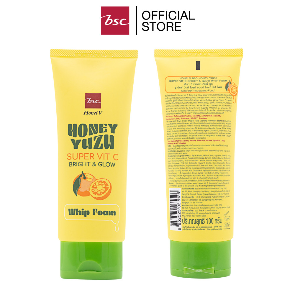 HONEI V BSC HONEY YUZU SUPER VIT C BRIGHT&GLOW WHIP FOAM ฮันนี่ วี บีเอสซี ฮันนี่ ยูซุ ซูเปอร์ วิตซี ไบรท์ แอนด์ โกลว์