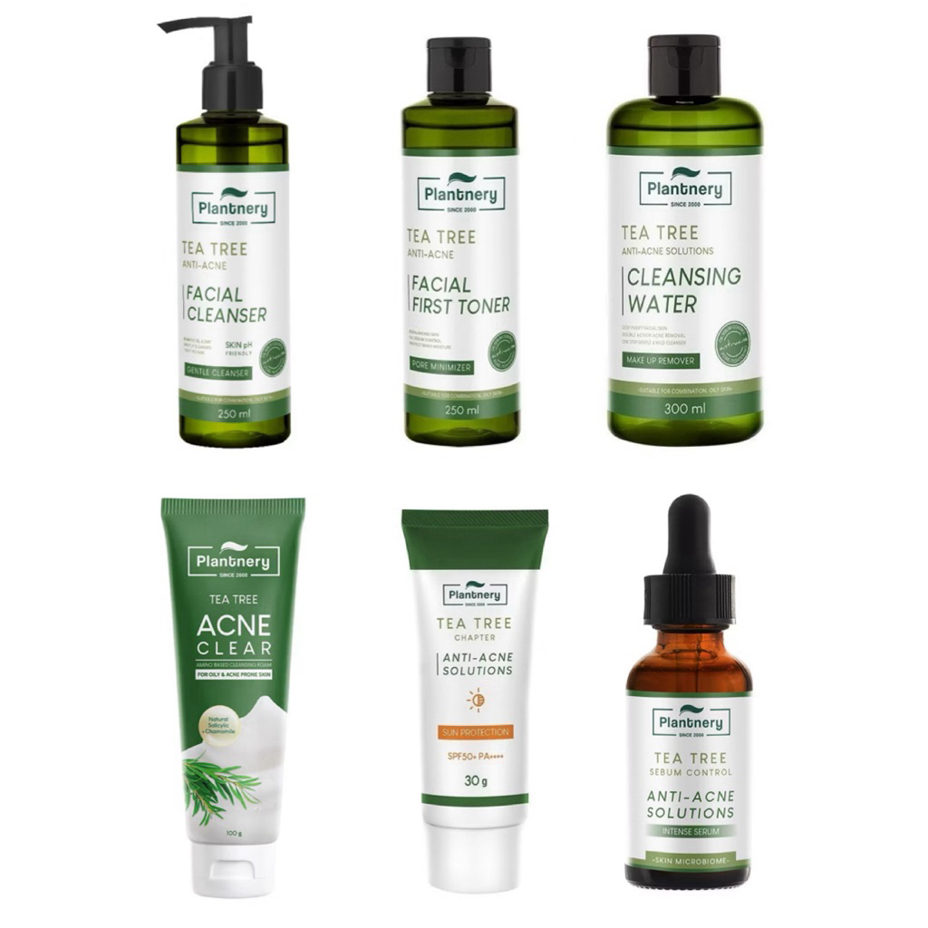 🍃แพลนเนอรี่ ชุดลดสิวคุมมัน Plantnery tea tree Set Exclusive First Toner /Intense Serum /Facial Cleanser /Cleansing Water