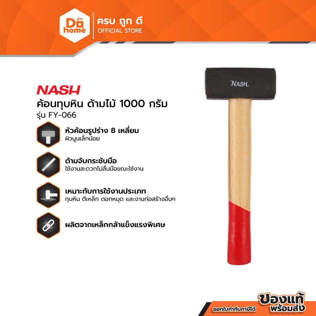 NASH ค้อนทุบหิน ด้ามไม้ 1000 กรัม รุ่น FY-066 |EA|