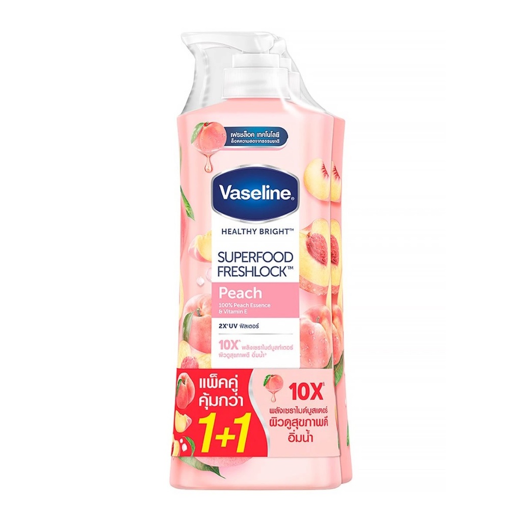 Vaseline วาสลีน บอดี้โลชั่น เฮลตี้ ไบรท์ ซูเปอร์ฟู้ด เฟรชล็อก พีช 300 มล. แพ็ค 1+1 ขวด
