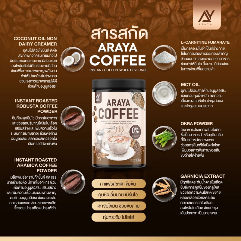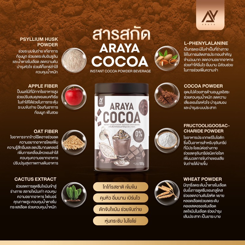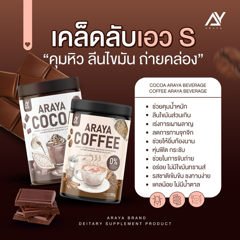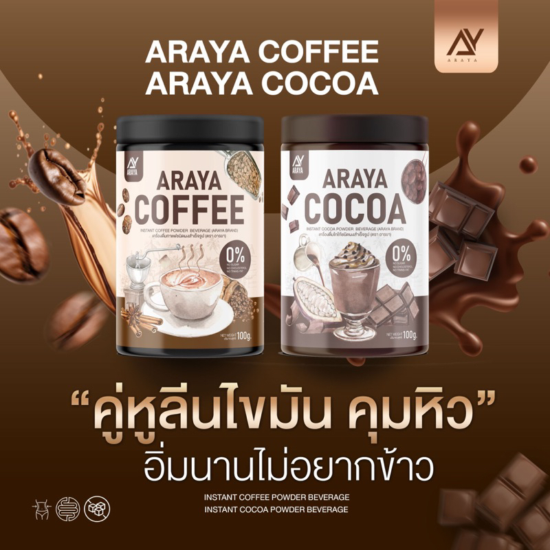 Araya Coffee อารยา คอฟฟี่ / Araya Cocoa โกโก้ [100 กรัม] [1 กระปุก] เครื่องดื่มชงเพื่อสุขภาพ คุมหิว อิ่มนาน ไม่มีน้ำตาล