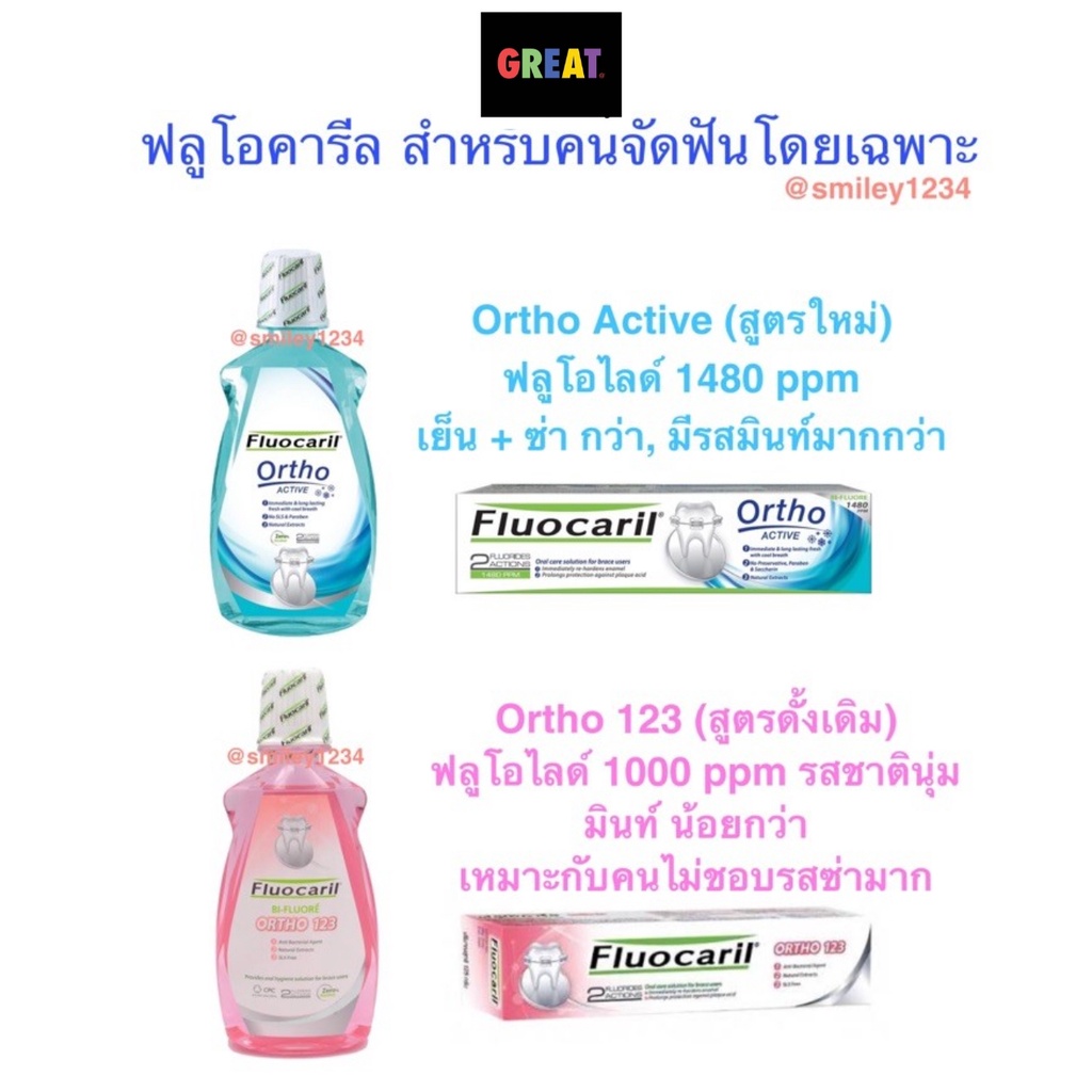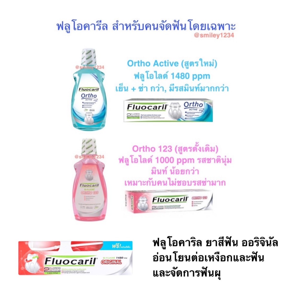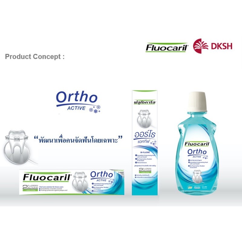 Fluocaril Ortho 123 ฟลูโอคารีล ออริจินัล แถมแป รง 200g และ สำหรับคนจัดฟัน น้ำยาบ้วนปาก 500 ml, ยาสีฟัน 100 ml