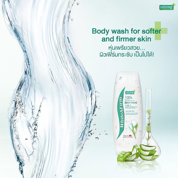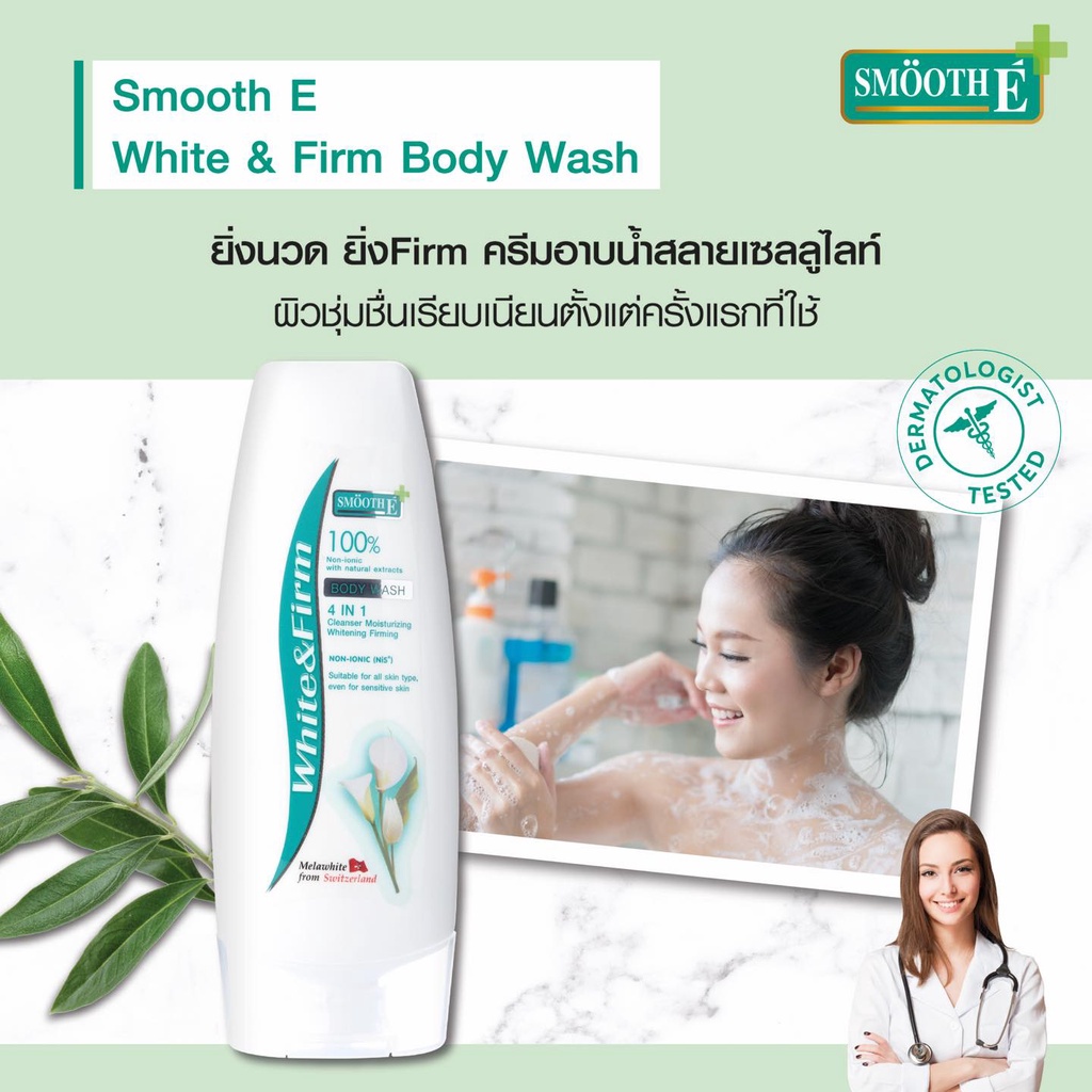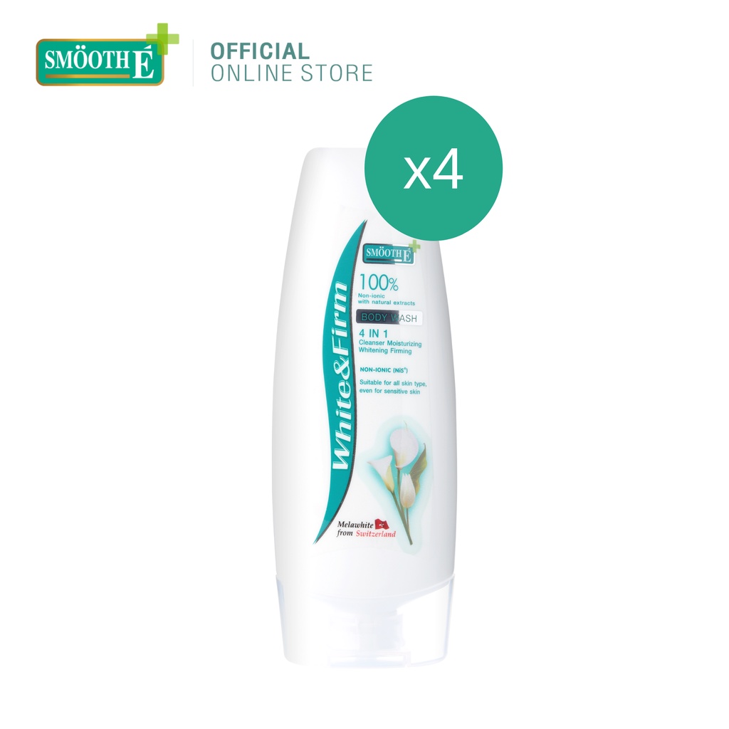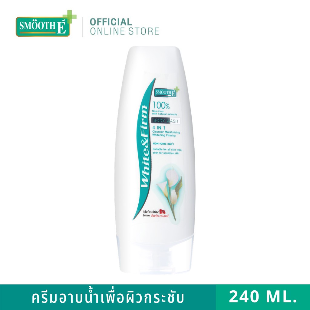 Smooth E ครีมอาบน้ำยกกระชับผิว ผลัดเซลล์ผิว เพิ่มความชุ่มชื้น White & Firm Body Wash 240ML. ผิวแพ้ง่าย สมูทอี[แพ็ค 4]