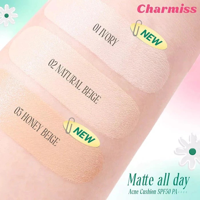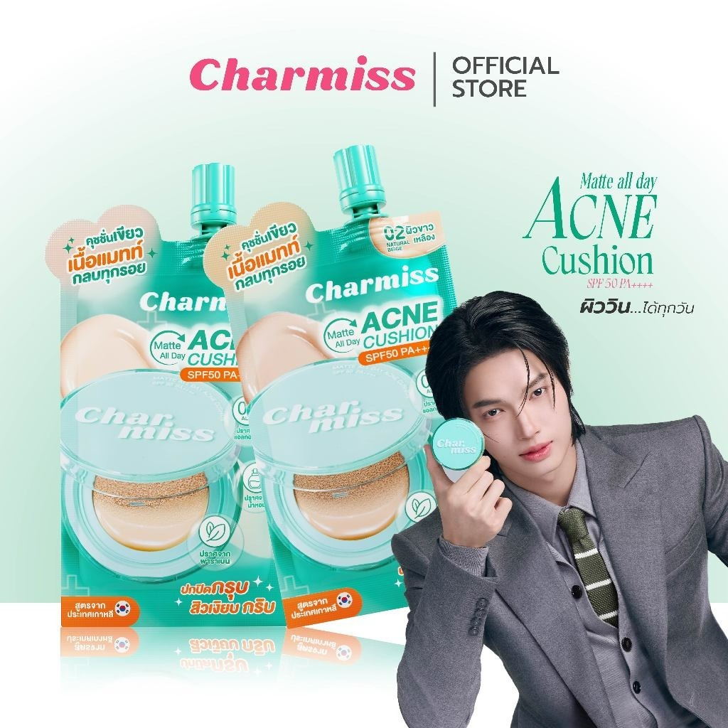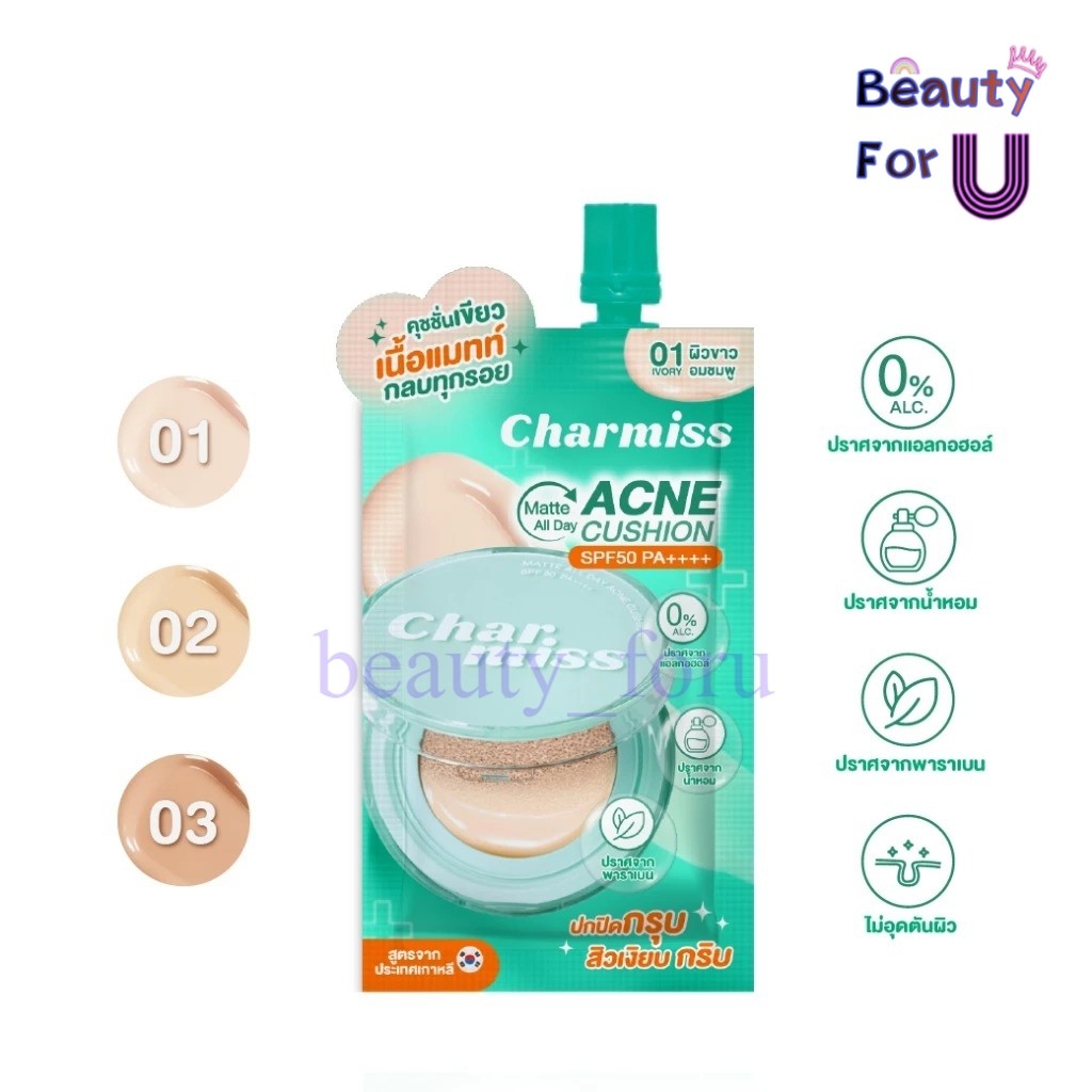 Charmiss Matte All Day Acne Cushion SPF50 PA++++ ชาร์มิส คุชชั่นเขียว แบบซอง ขนาด 5กรัม.