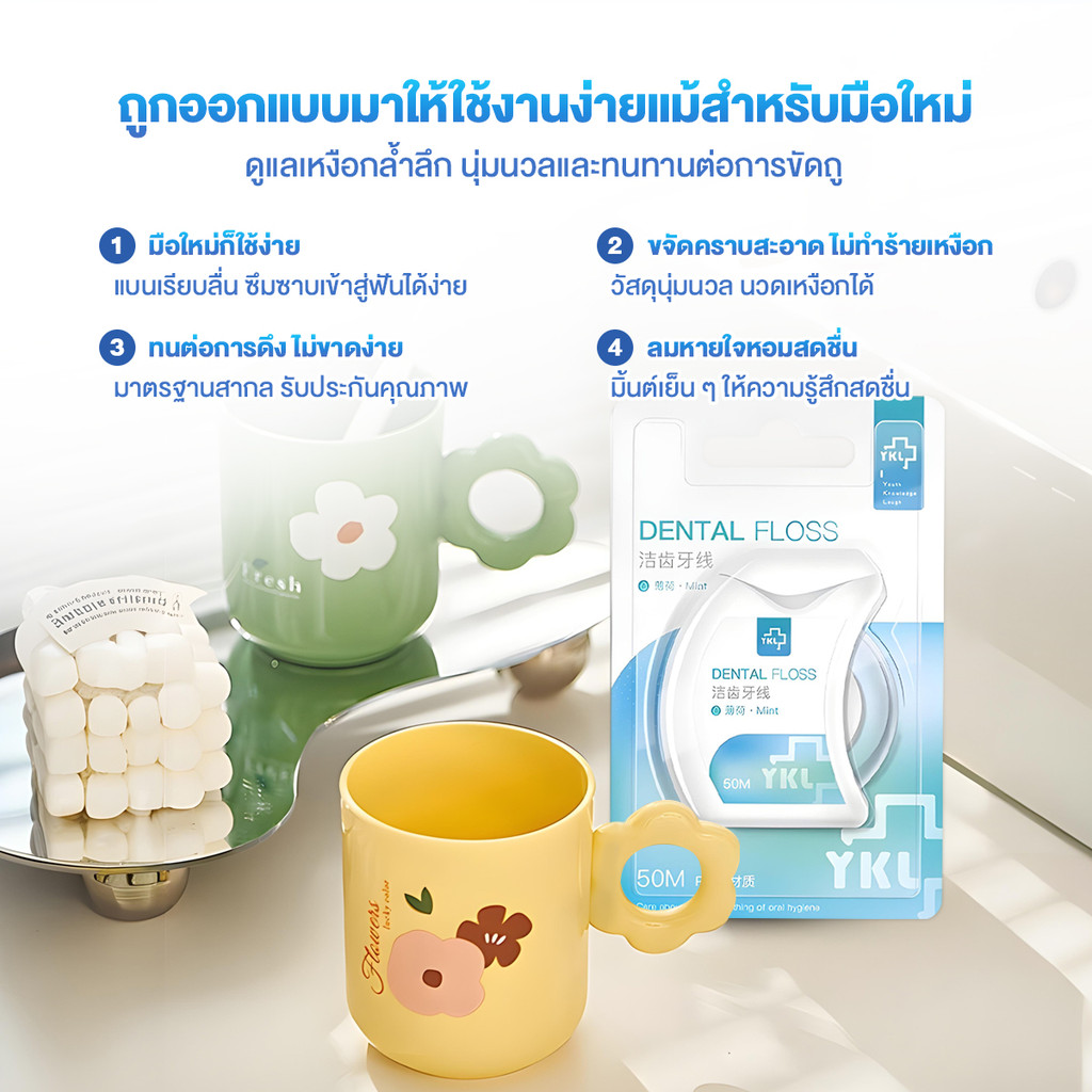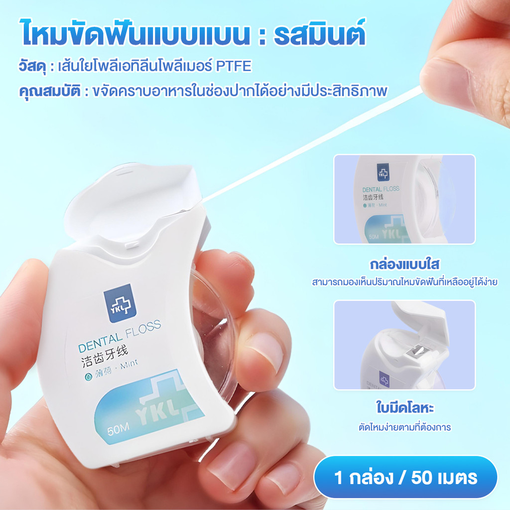ไหมขัดฟันไมโครแว็กซ์ ไหมขัดฟันแบบแบน ไหมขัดฟัน ไม่บาดเหงือก กลิ่นมิ้นต์ ขจัดคราบพลัคและเศษอาหารได้อย่างมีประสิทธิภาพ