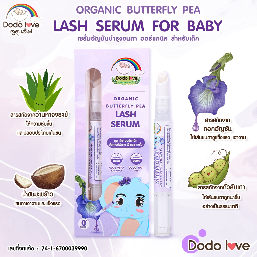 DODOLOVE ออร์แกนิค เซรั่มขนตาเด็ก สารสกัดอัญชัน บำรุงขนตาเงางาม ใช้ได้ตั้งแต่แรกเกิด