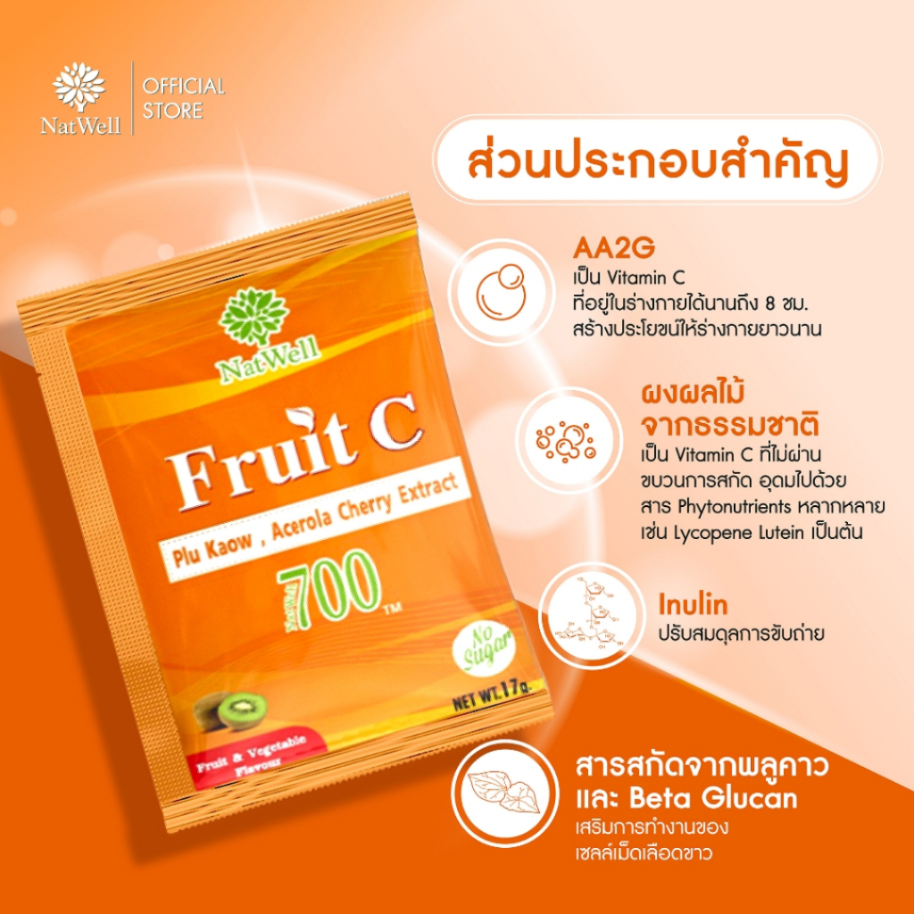 NatWell Fruit C 700 (10 ซอง) วิตามินซีแบบชง เสริมสร้างภูมิต้านทาน ลดอาการภูมิแพ้ (ของแท้)