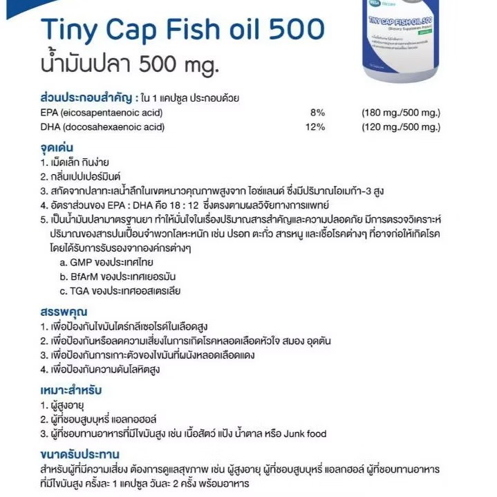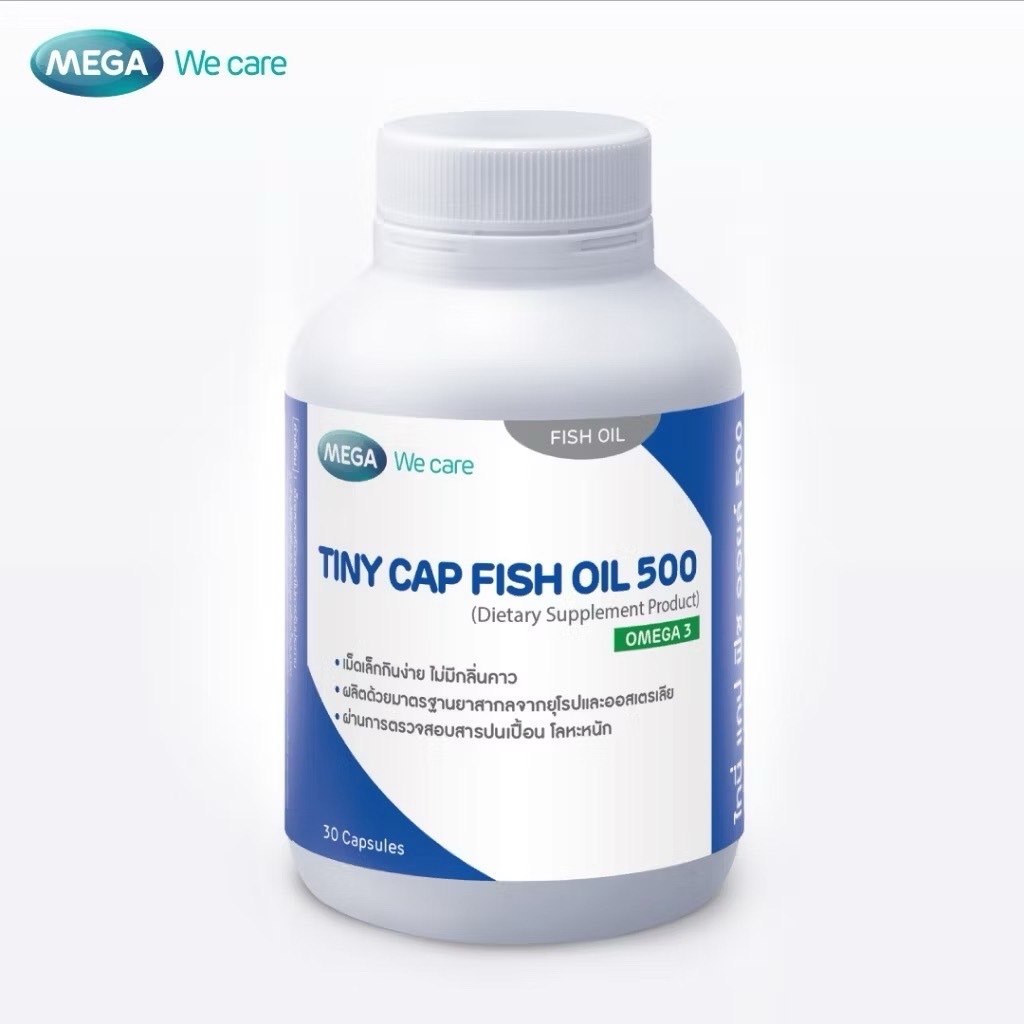 Exp.10/2026 (30 แคปซูล) Mega We Care Tiny Cap Fish Oil 500 น้ำมันปลาเม็ดเล็ก ไม่มีกลิ่นคาว