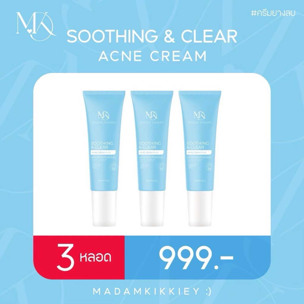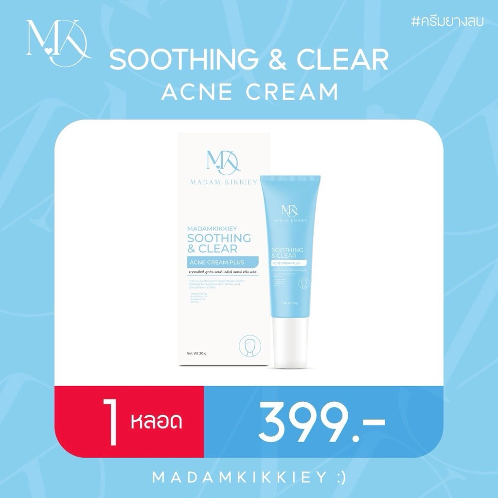 Soothing &Clear Acne Cream ครีมยางลบ 20g. Madamkikkiey มาดามกิ๊กกี้ พี่กุ้งกดสิว