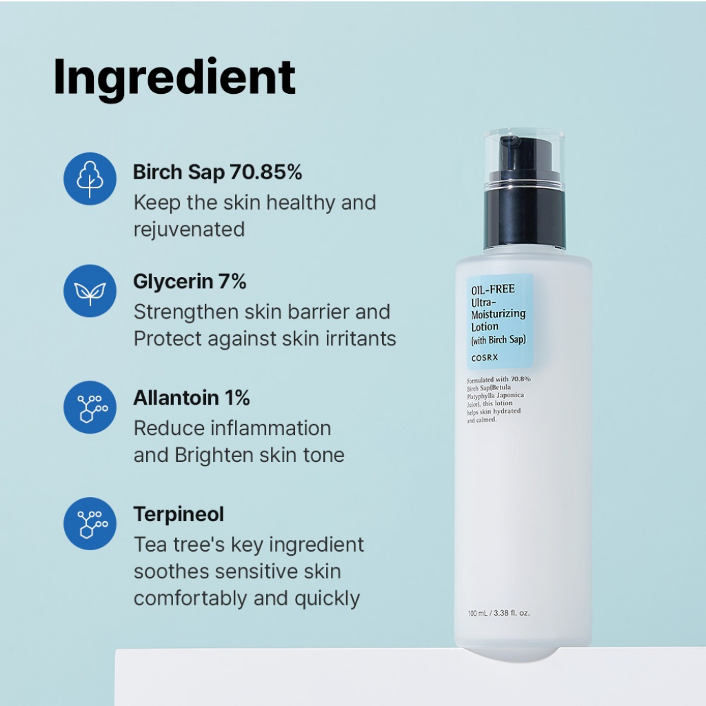 [COSRX] Oil-Free Ultra-Moisturizing Lotion 100ml – มอยเจอร์ไรเซอร์ Birch Sap น้ําหนักเบา