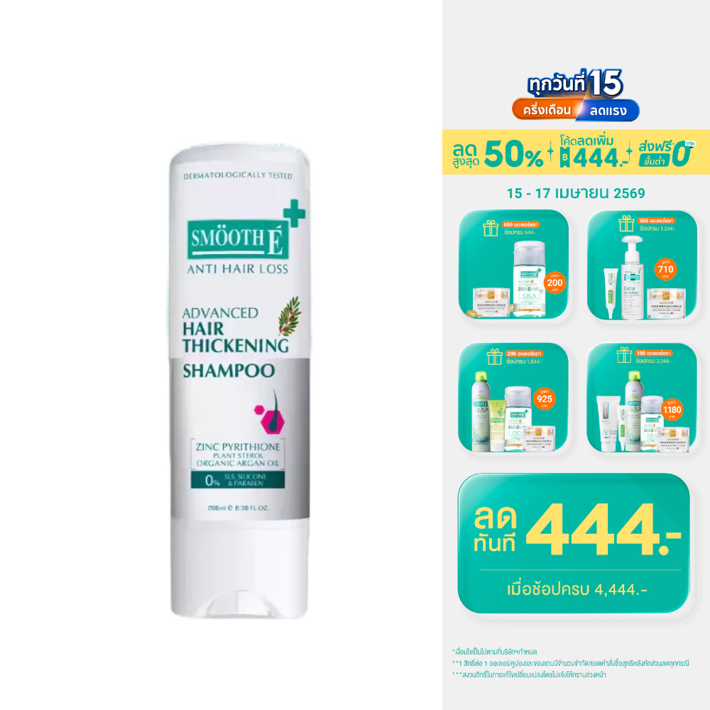 Smooth E Anti Hair Loss Hair Thickening Shampoo 75 ML. / 200 ML. แชมพูยา ลดผมร่วง กระตุ้นผมหนาจากราก 5X ขจัดรังแค
