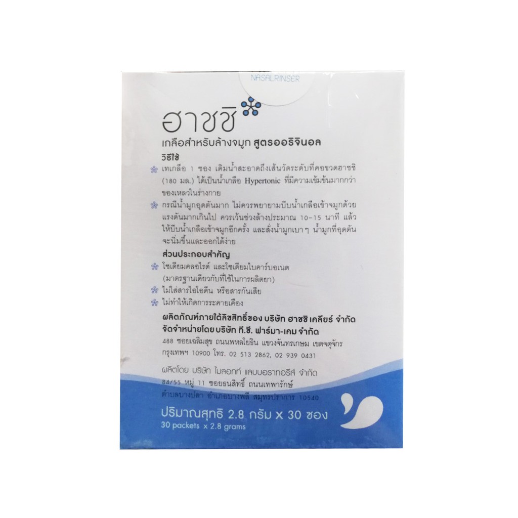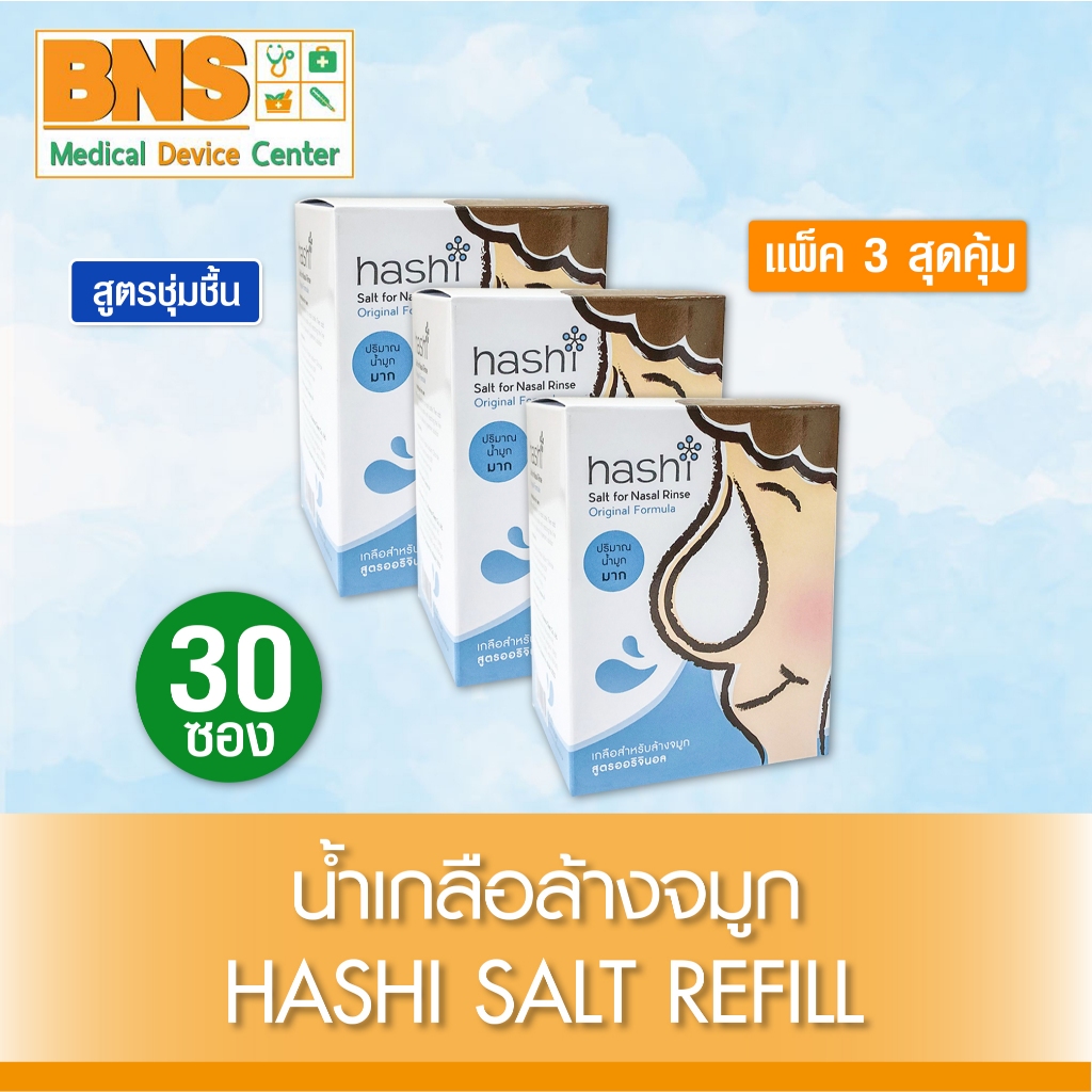ส่งเร็ว !! ( แพ็ค 3 กล่อง ) Hashi refill sait เกลือ ฮาชชิ สำหรับล้างจมูก 30ซอง/กล่อง (ถูกที่สุด)