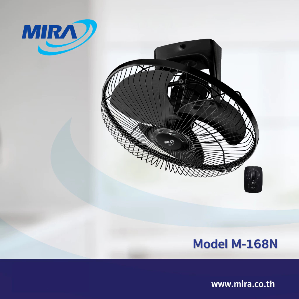 MIRA พัดลมโคจร 16 นิ้ว รุ่น M-168 สีดำ ปรับได้ 2 โหมด รับประกันมอเตอร์ 3 ปี