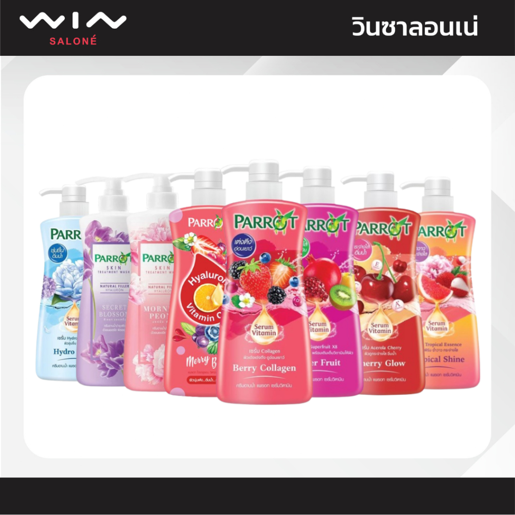 (2 ขวด 119.-) Parrot แพทรอท ครีมอาบน้ำ เซรั่มวิตามิน 450 มล.หัวปั้ม ผิวนุ่ม เรียบเนียน อิ่มน้ำ