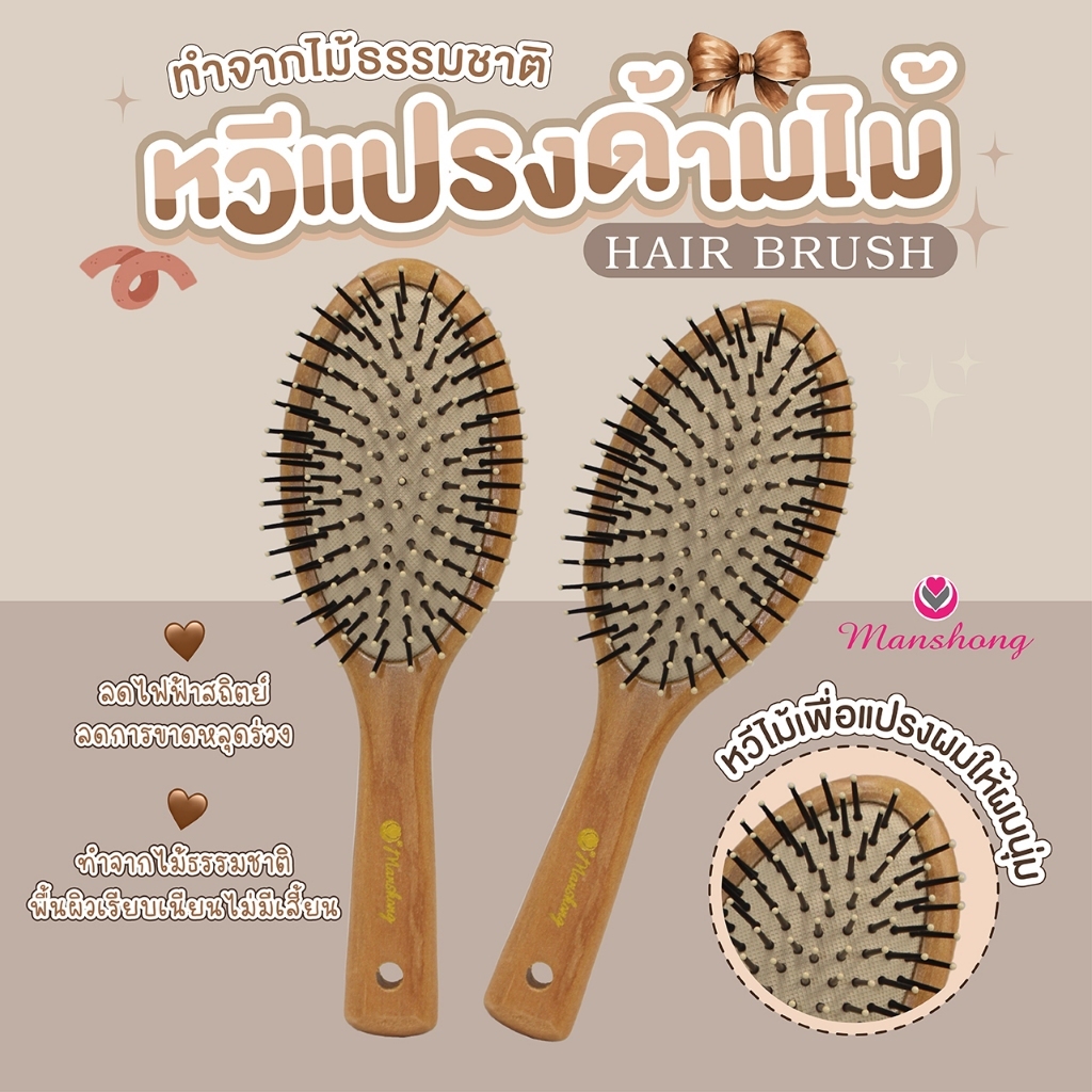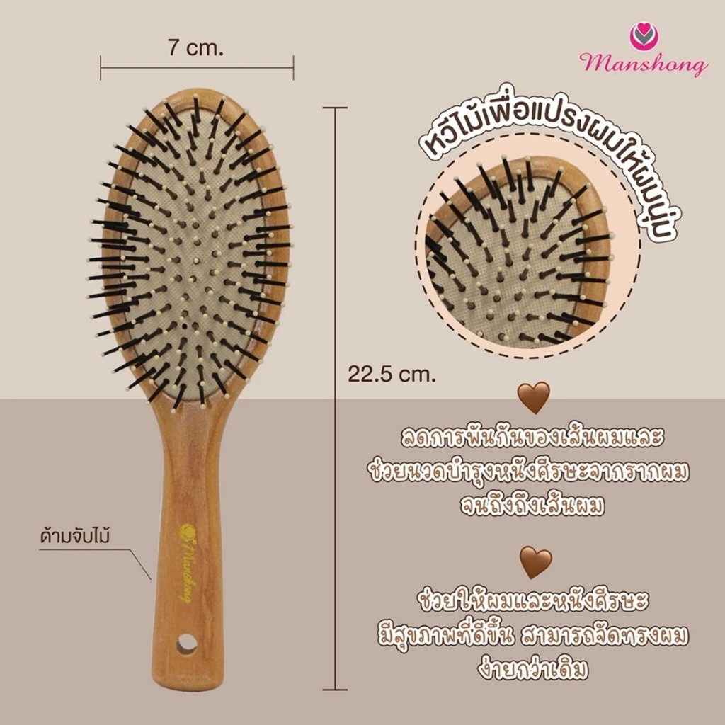 หวีแปรง ด้ามไม้ Manshong Hair Brush For Easy Styling (BR-48)